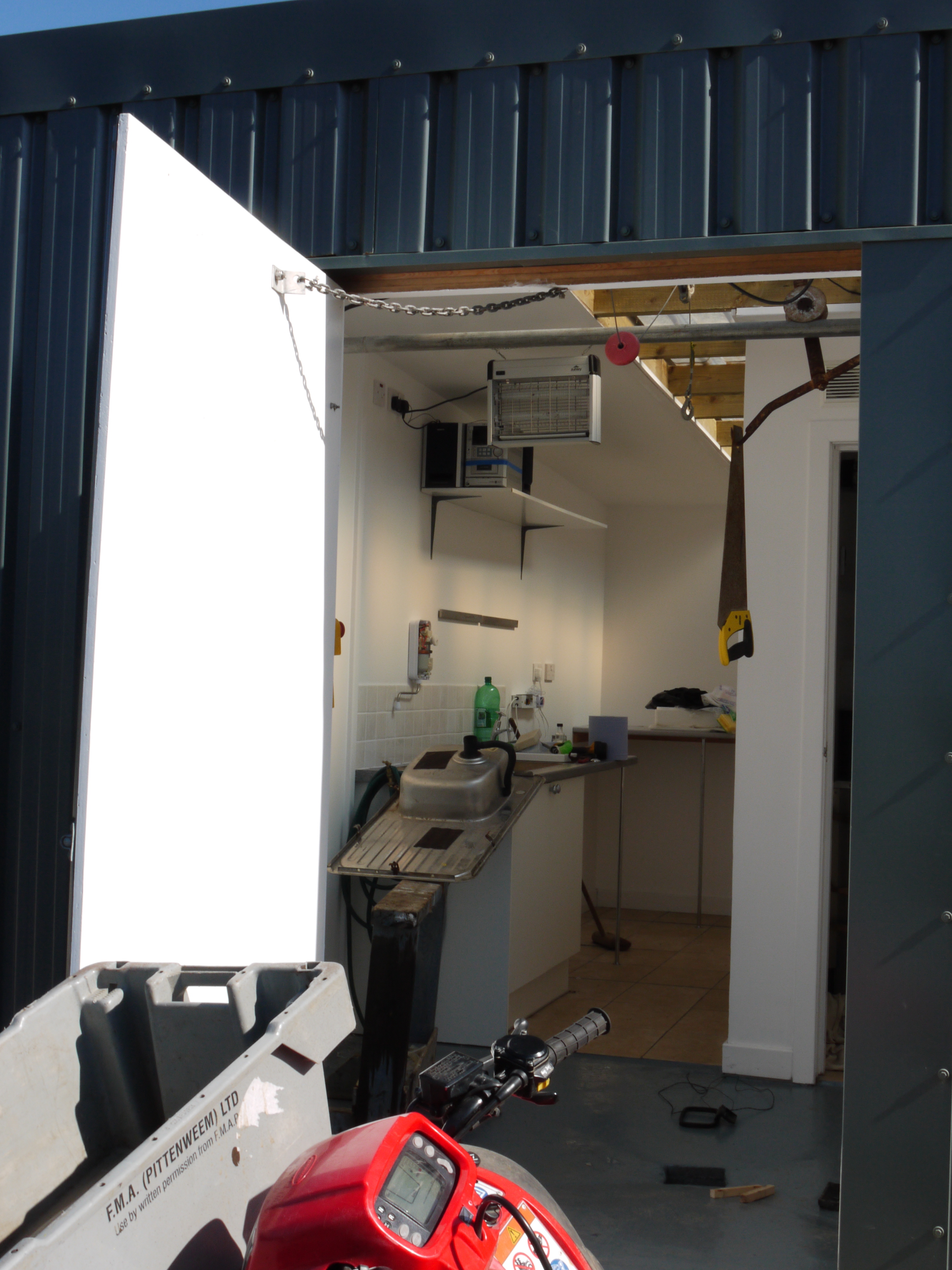 Whilst all this was going on myself and L were up top, L in the Polytunnel weeding and watering me in the larder. I was getting the rest of the larder bits and pieces together for the coming season. We saw four young stags this morning and this spurred me on to keep on track with the preparation of the larder for the Environmental Health first then stags second. Very soon venison steaks for tea.