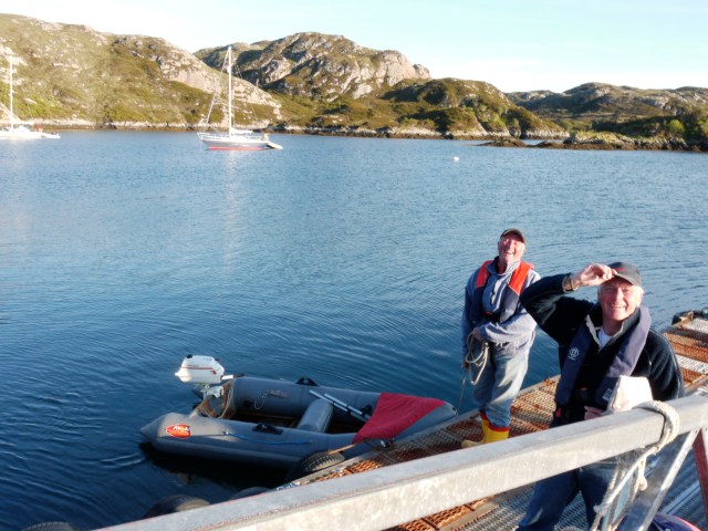 The worry to-day was the wind, although the ferry trip this morning was perfect the suspicion was that the wind would or could be a problem, sure enough by lunch time it kicked off and by mid afternoon we had a full gale. That made for some very interesting arrivals at the mouth of our harbour. With huge waves the yachts were being tossed about but no one seemed to have any problems apart from a bit ofd an uncomfortable ride. First in was John MacIntyre the seasoned sailor from Gairloch delivering a boat with the owner Mel’ , they had left lossiemouth on route to Gairloch a few days before. Then in quick succession 3 more, two from the South one from the North.
