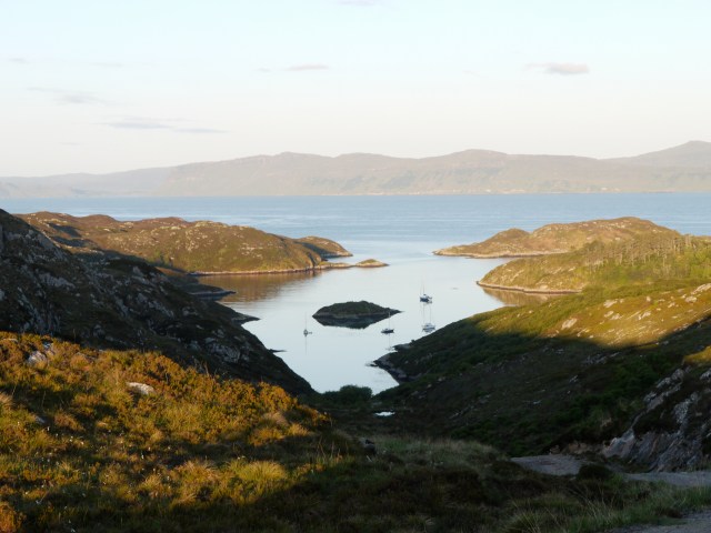 Was up this morning at 4.30am, thinking about deer so after 1/2 hour thinking about deer I got up, had a prowl about and saw a few, it was so hot on top of the hill at 5 this morning but in the valleys almost frost. The yachts (that will be the three non payers!!!!!) were idly swinging on their hooks and Rona was just coming to life, it was so good to be up then, reminded me of my milk lorry driving days (without the truck of course).