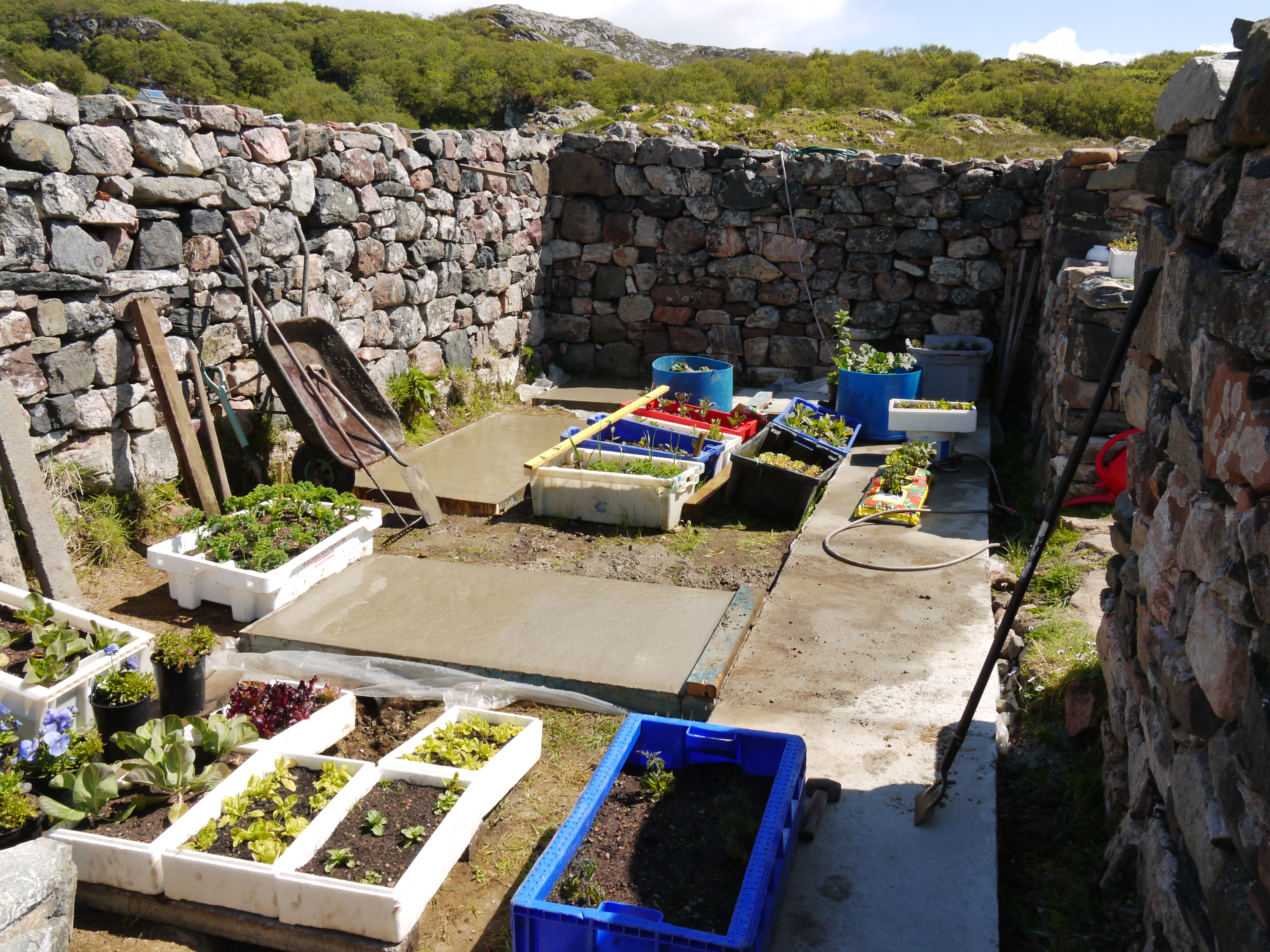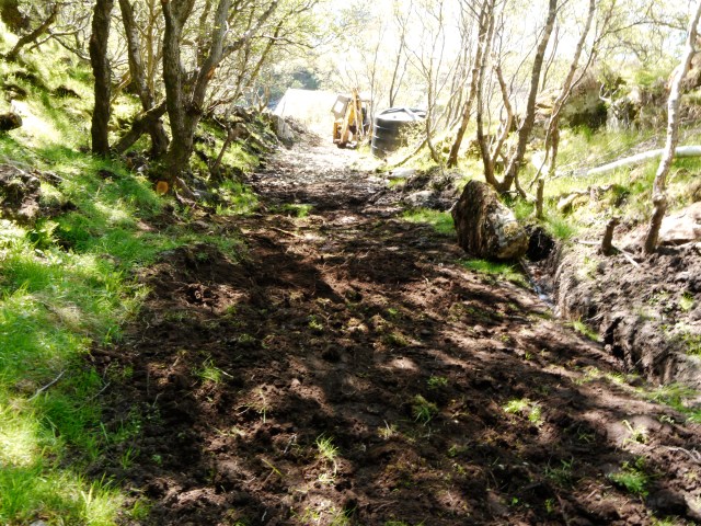 The beauty of getting up early is that you get so much done, so it was onto concreting the pads down at the ruin for the walled garden to take shape. But the heat was a problem so I had to soak the concrete most of the rest of the day. Then it was onto the drainage at Dry Harbour with the JCB, but I have to say after weeks of no rain the end of the path where it is soft is still soft and it was a struggle to get out, but I did and sort of improved it a bit.