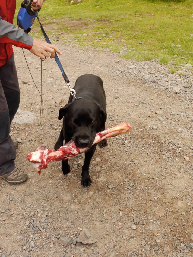 The visiting yachties are still here and ‘Toby’ the ship’s dog was very pleased to have a present from the larder.