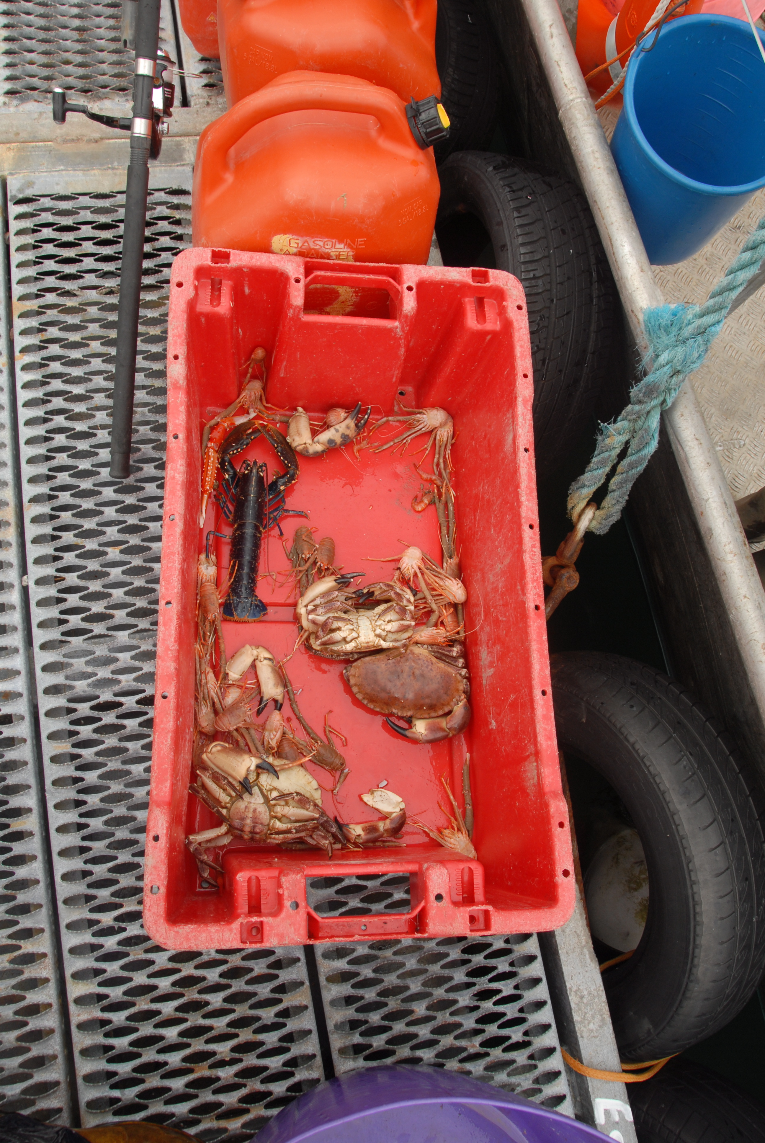 First thing this morning it was calm so I shot out to lift the lobster/crab creels and check them out. As you can see the catch was pretty small, but we are only fishing a few creels for the pot, thank goodness Portree has a supermarket.