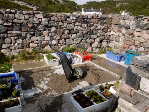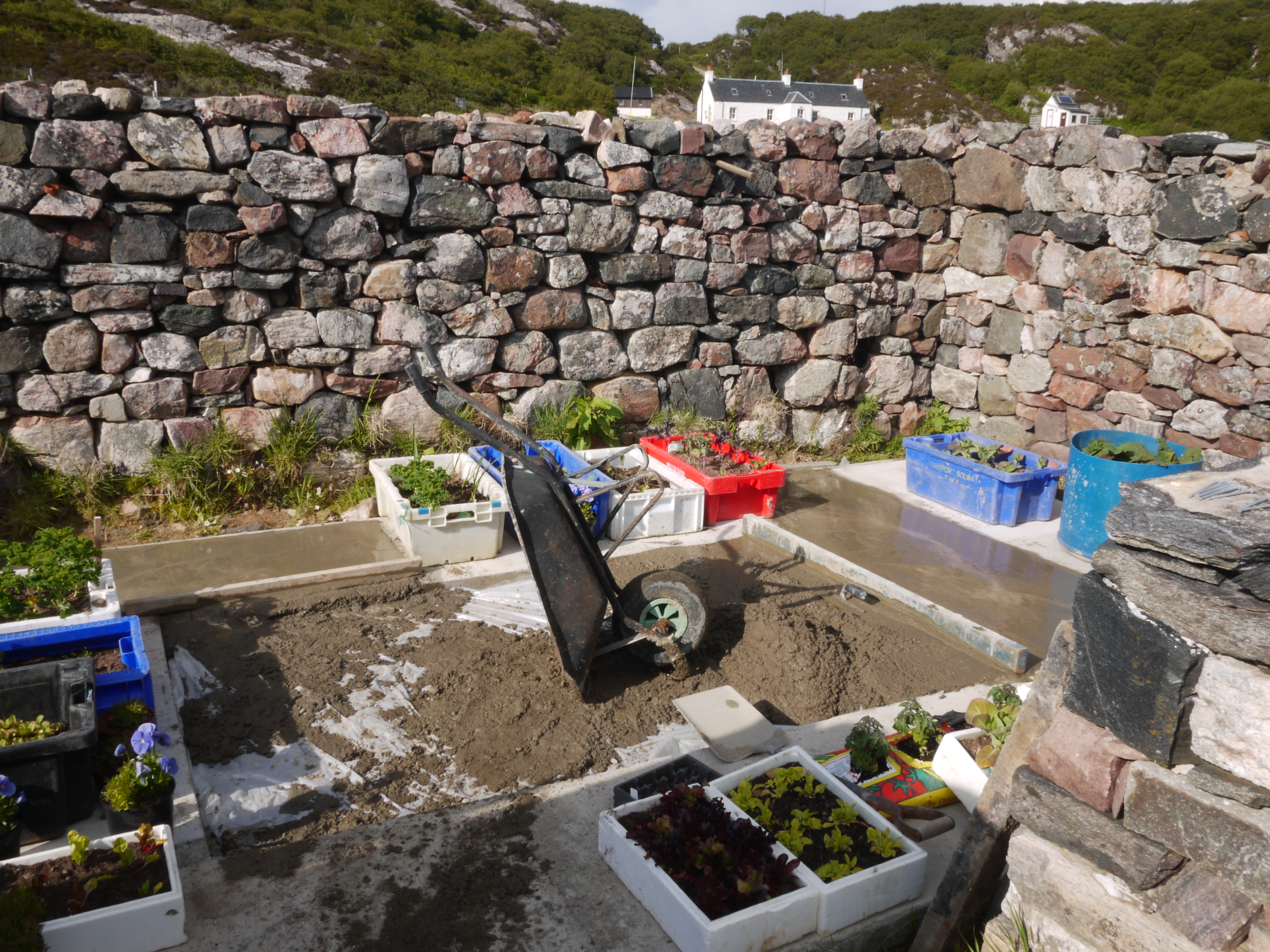 Once the day trippers had left I got stuck into the concreting in the garden, in the middle of it the visitors from Dry Harbour arrived looking for bottles of wine, thirsty work having a holiday. Around about 7 ish I finished having run out of cement, 1 bag would have done it but you cannot nip out to B&Q here so I’ll be on the phone to Kevin for some more.
