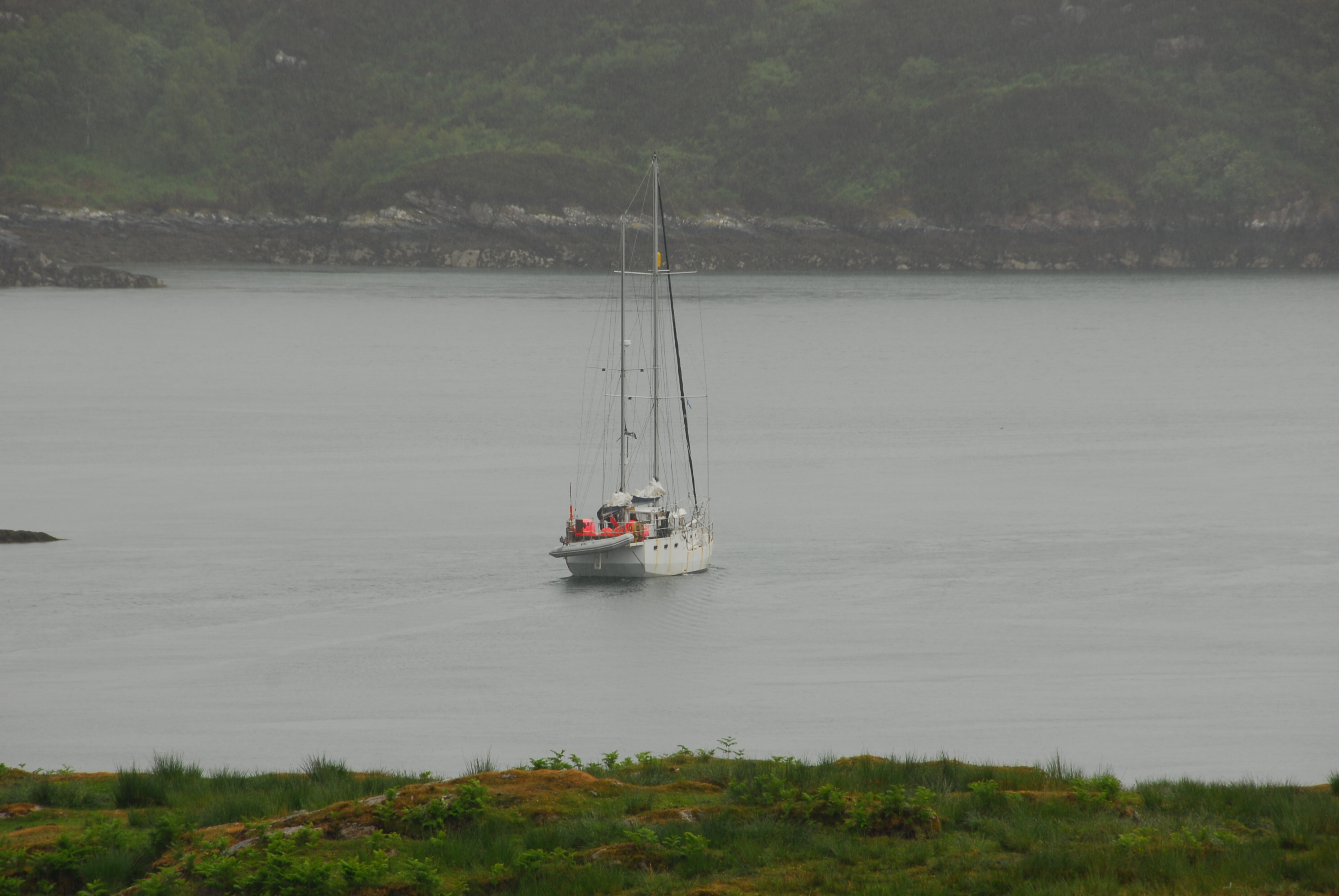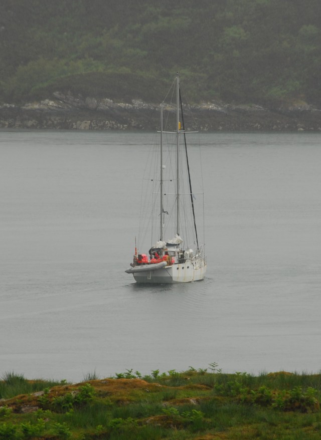 You can see in the foreground the dead grass where the lack of water has killed the thin soil areas and there are loads on Rona. Looks like the yacht has had a wet time though, there are plenty rusty streaks.