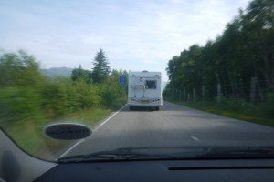 Then we hit the road, dumped the empties at the glass collection boxes, pick up mail and headed down the road. Being early we thought we would miss the traffic but by the time we got to Kyle we came on a few hold ups with holiday makers hitting the road, all was well until we got to the single track and there he was waiting for us in a lay by, I saw him pull out but it was too late. 5 miles later a small double track stretch appeared and here we go we shot past. I love the Kyle to Dingwall road but I get very tired looking at the back of a caravanette at 27 mph.
