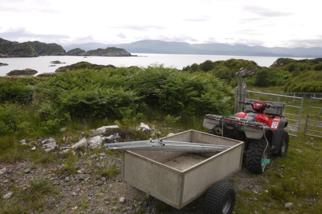 After a lazy start it was paperwork and emails. With the weather so good it is difficult to stay in but it has to be done and it felt cold and damp outside almost like a November morning but as usual once the cloud thinned it warmed up. Later in the day I took the mower and strimmer to Escape to cut their grass. Again with no rain the grass has only needed cutting twice this year of course the deer help. I hear the crofters are buying hay in for the Outer Isles stock as there is very little growth.