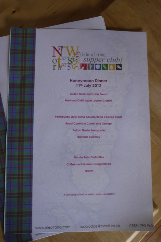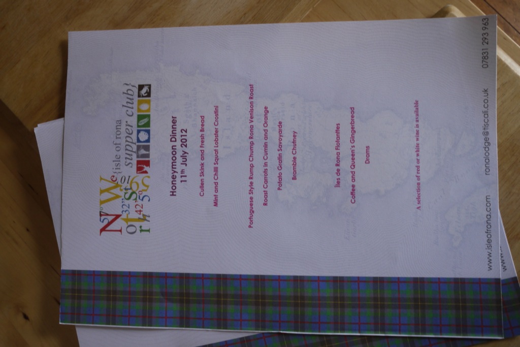 Tonights the night!! We have Nick and Val, Emma and James the honeymooners who are staying at Dry Harbour this week. They both sent in a request for a meal in Rona Lodge and we are happy to help.