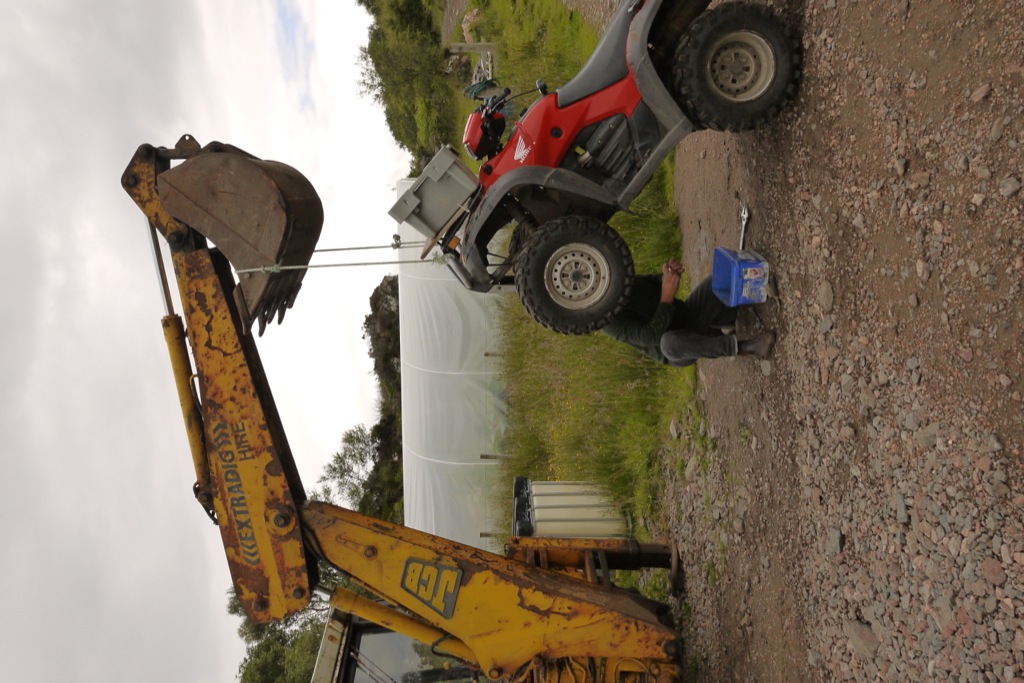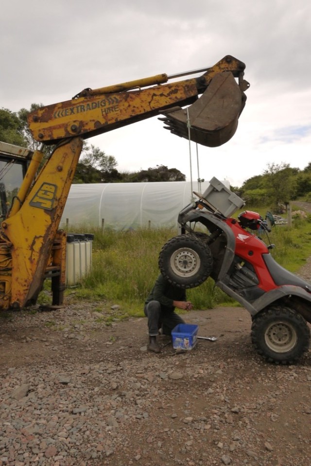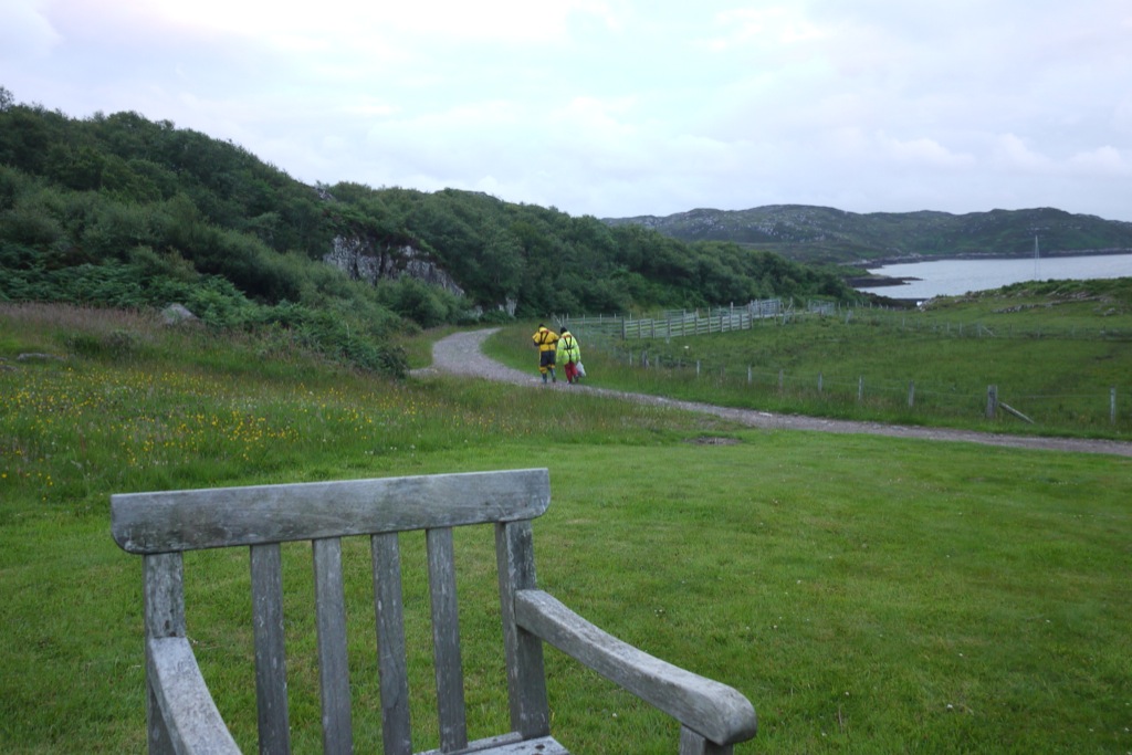 To-day started overcast and with the odd blink of sun it wasn’t bad but still not what we have been used to, at least it stayed dry. Dave and Jane were coming to-day so another changeover and MV Spindrift was arriving at 12.15. Everything was going swimmingly well until 15 minutes to 12 when the valance under the bike struck a tree root and bent it back so it was up to the garage for a quick repair.