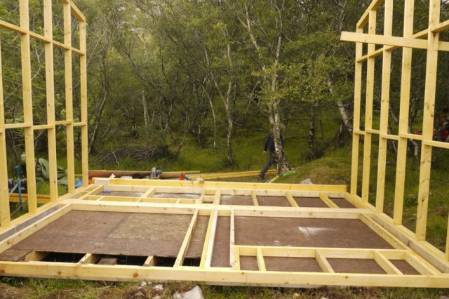 Pam and Kevin duly arrived with the guests then it was over to Dry Harbour to sort them out and quickly strim the garden which was abandoned yesterday when the new strimmer head jammed with cord. Great new idea but a fiddle to fix. However we got that done and Dave and Jane were well pleased to be back. Over to Big Harbour and Ian was busy at the Summer House/Garden shed. Hopefully we’ll get the roof on tomorrow but he has certainly brought this project forward, we’ll soon be running out of timber but hope to get 20 + sheets of osb board (9mm) over soon. I did not realise there was two sizes of board and ours is imperial (4 ft) no wonder I’ve been pulling my hair out in the past when I’ve had to sheet a wall.