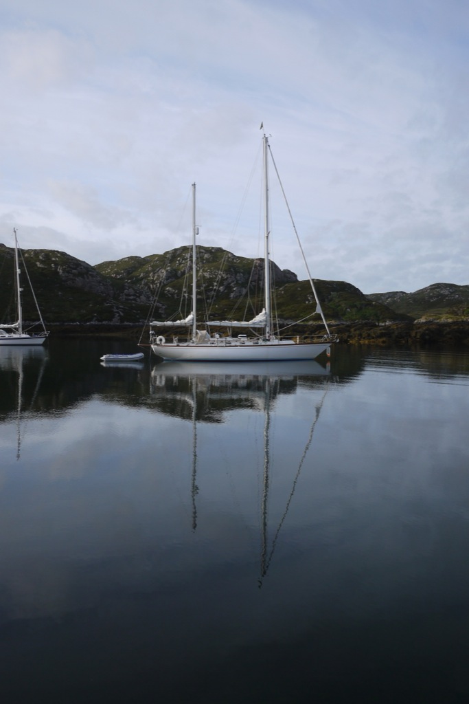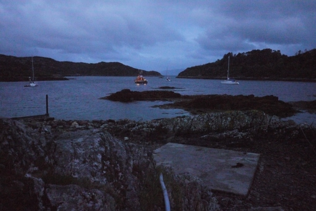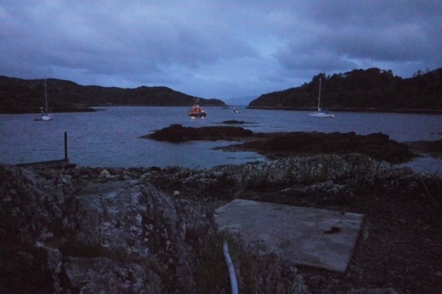 Friday/to-day: Woke up smelling diesel engines at 4.00 am. Went to the loo and there was Portree lifeboat standing by, got dressed and headed down to the pontoon but the action was over I guess, here was the Stornoway yacht Rebecca that arrived on Wednesday night tied up to the pontoon. Obviously it had had a problem in the night and the lifeboat had to be called. It had shifted early evening into the gut at the NE corner of the bay. The wind picked up in the late afternoon and as has happened this season it was much stronger than forecast. I advised everyone I saw later on who came ashore to have sufficient chain out (not that I’m an expert, but I’ve seen quite a few dragging for the want of 5/10 metres of extra chain).