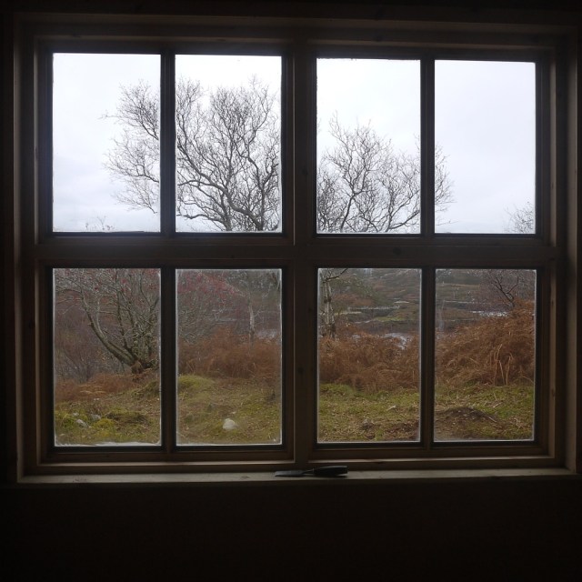 The light on the clouds has been quite spectacular and difficult to photograph but generally it has been 50 shades of grey. Even out of the chalet windows, now finally puttied up. Fingers crossed for a dry window cill.