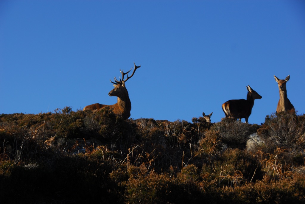 On Saturday it was grey again, the guests had left on time, their cottages spotless and around lunchtime the clouds disappeared West and the sun returned. there was a fresh covering of snow on the hills and it was crystal clear as I made my way over to Dry Harbour. We had seen a good stag on the way from Dry Harbour to the pontoon with the baggage in the morning, the guests were taking his photo but unfortunately my photography skills deserted me and the pictures of ‘the penguin’ were fuzzy, the guests will know what I mean!! However, in the afternoon the good stag appeared behind the Lodge, he looked very familiar with Julie, the hind, I guess it may have been one of her sons.