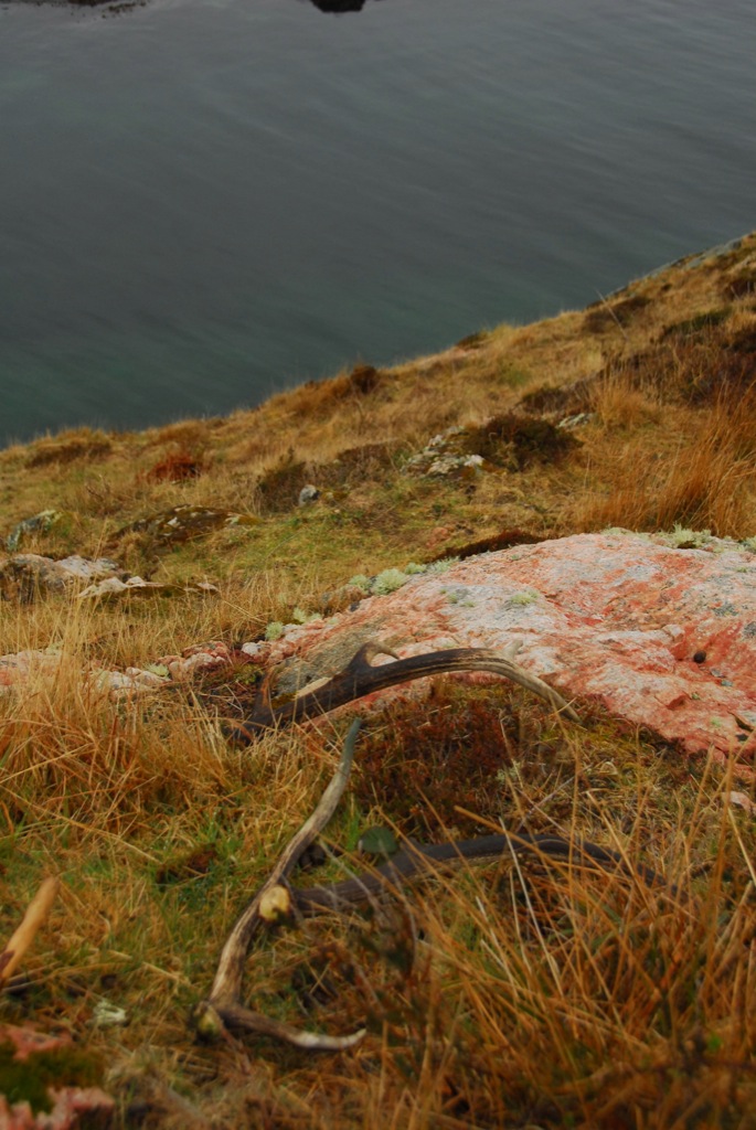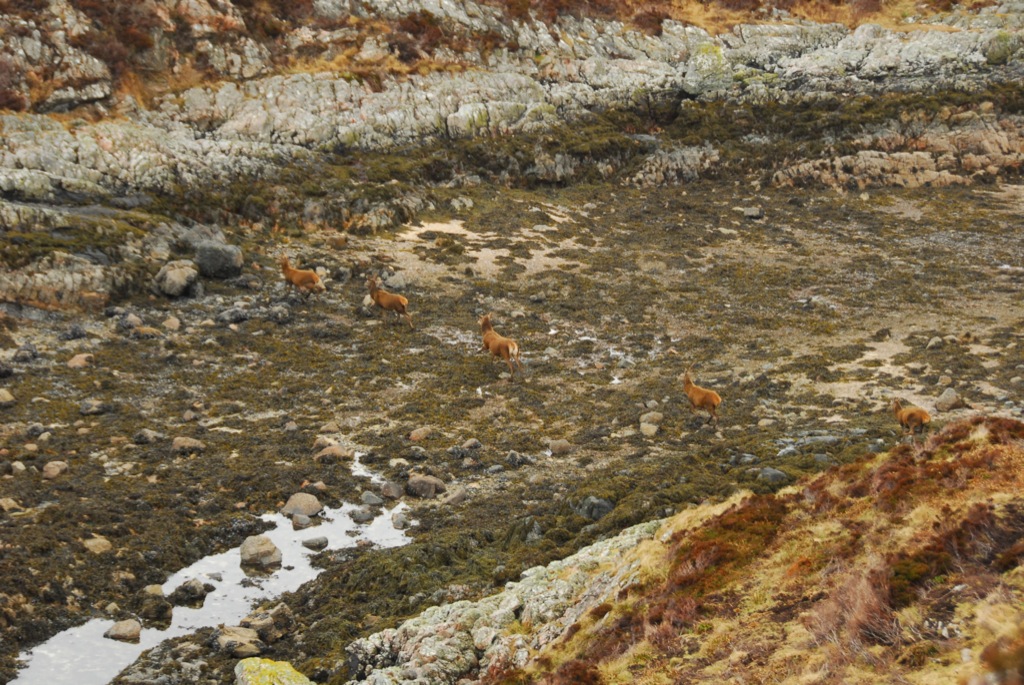 as I walked along the ridge of Garbh Eilean, the big Island just of off Rona I could see a few stags feeding down by the shore but they saw me and high tailed it off the Island, I thought they might swim but they took the dry route.