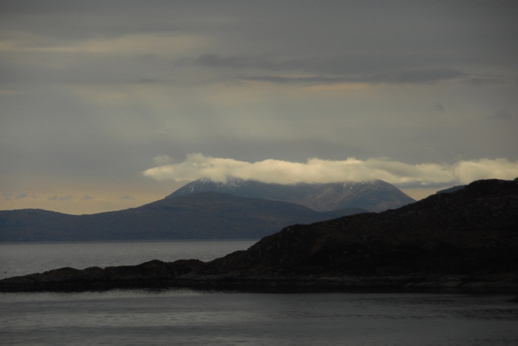 They had been cast late and not chewed as they do. In an effort to get some calcium back into their bodies, the stags/hinds chew the antlers and we do often find just the base. I have in fact seen a hind chewing a stags antler as the stag lay down chewing the cud, no camera of course. It had been a wet night first rain for three weeks, welcome of course but it could have been a bit warmer. The view was pretty cold but still impressive with the clear skies South of the Cuillins.