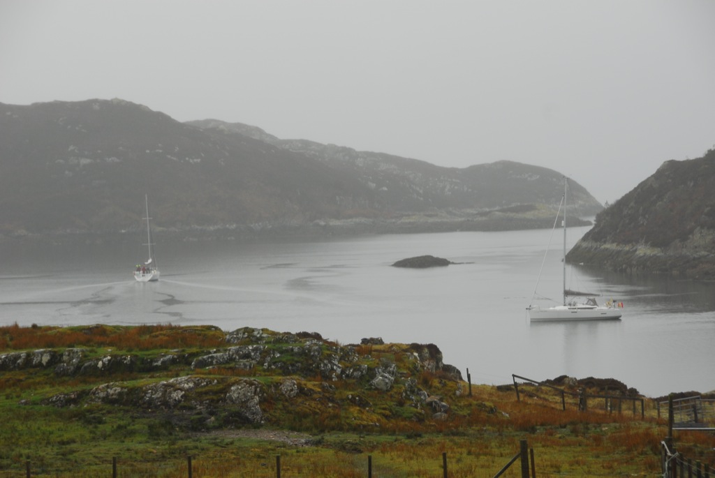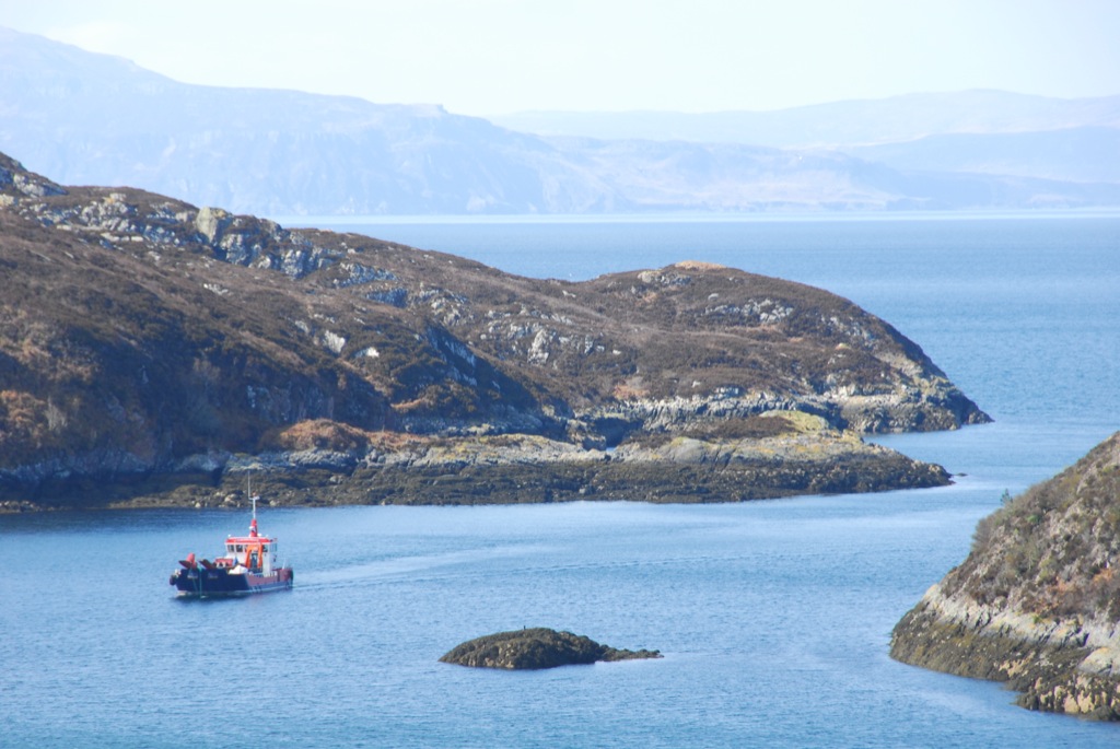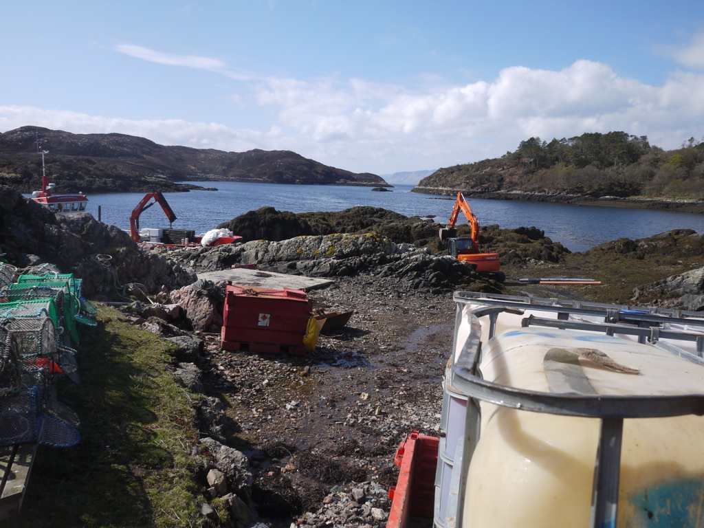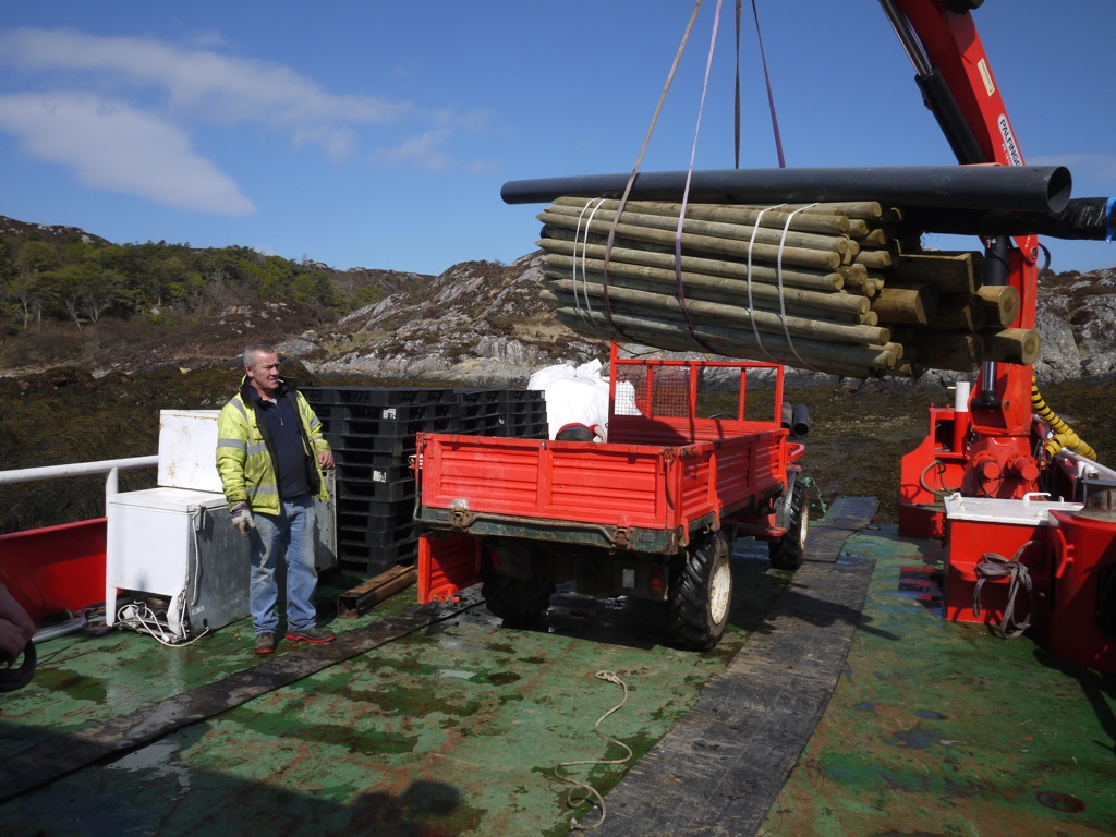 The afternoon was taken up with prep’ for the landing craft coming on Tuesday. We had to get a plastic tank to the place where we were putting in a new reservoir as the water supply in the summer is inadequate. We decided to take another tank to Dry Harbour and quickly floundered in the mud with the tractor, so Calum was keen to see if the diff’ lock was working and we stripped out the back end of the tractor for a look. It worked but not as it should have and we now have to find a way to repair it, that will be this weekends job. We came down from the shed, late afternoon, very damp and still and found two of Mark Entwhistles yachts, Sleat Princess and Voyager of Sleat in the bay. When we got into the Lodge the radio was picking up the skippers conversation and we were intrigued to hear one of them telling the other that he was going to ‘Pollock’ next day. The other skipper said he had never heard of a place called ‘Pollock’ and after a few calls back and fore a voice from Voyager of Sleat (in the background of the yacht) said ‘Plockton’. Ah well it is easy to make these mistakes!!
