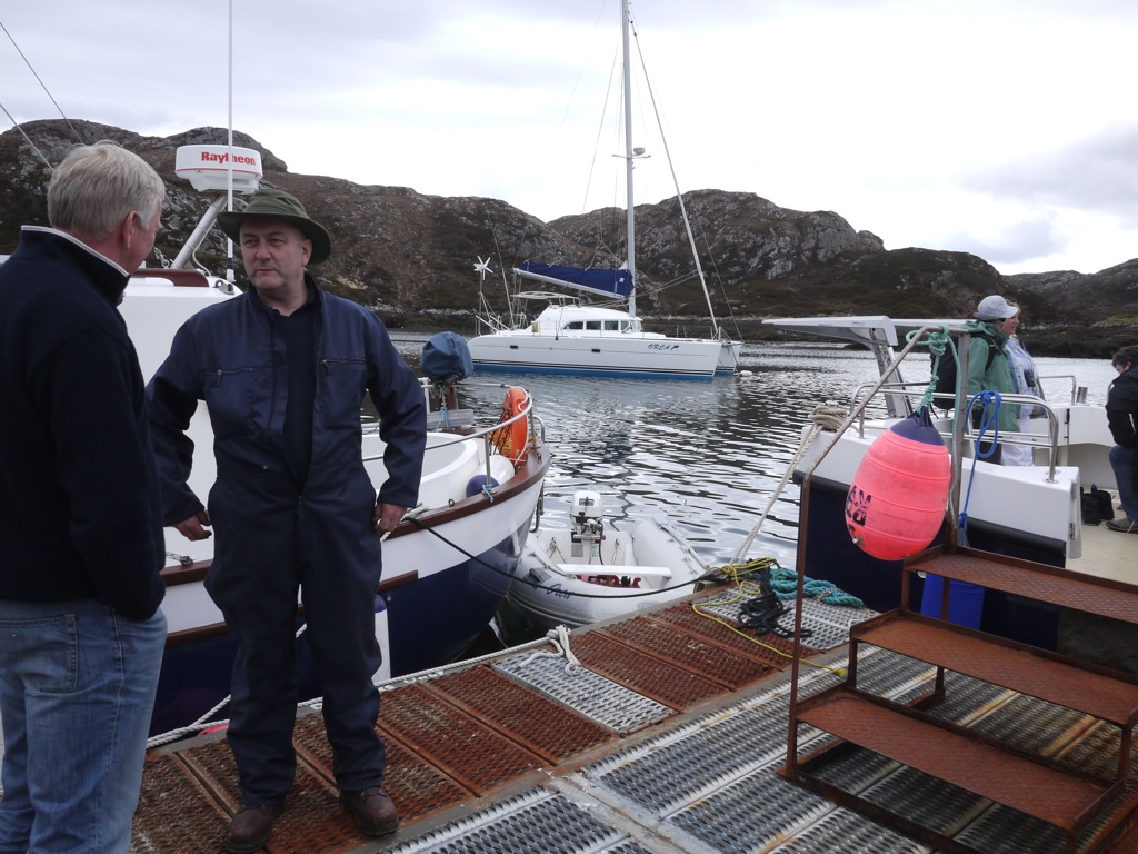 Back to the pontoon for a light lunch and the ‘Seaflower’ was entertaining guests. We had our lunch and went up to deliver pipes to Hugh but promptly got stuck in the mud of the new road. The rain started just as Kenny left the pontoon but they had a good journey back with a following sea, he did say it was a wet sail on the way over. The day was just about finished so we retreated to the cabin for a de-brief.
