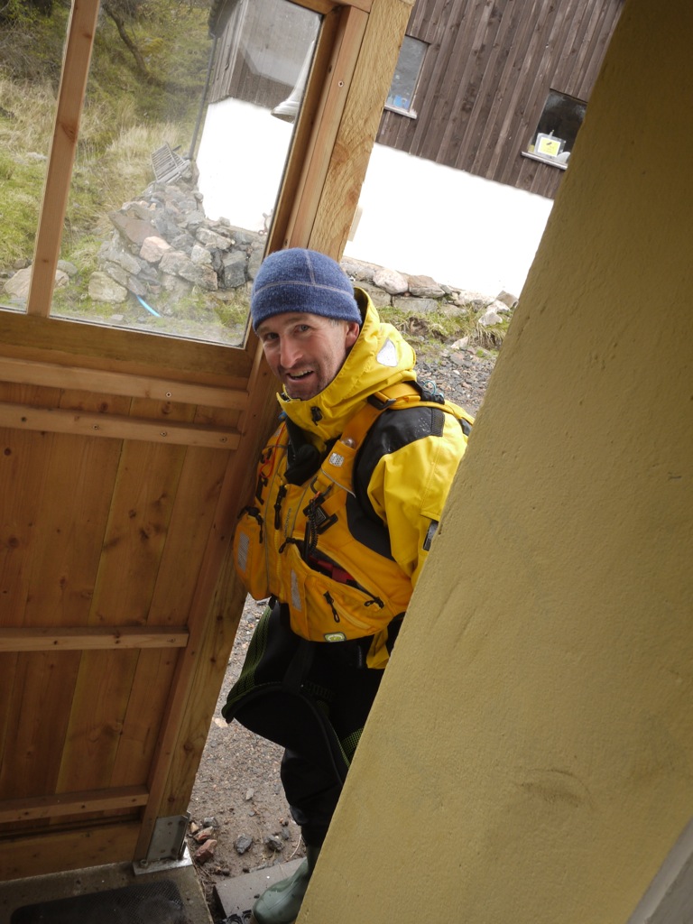 We worked away and by Monday we were well on the way with the path, Yacht Orca was still on the mooring and Yacht Blue Diamond was holed up as the wind really got up, 60knts of wind mid afternoon had the Hitachi digger rocking. It was quite scary and kept going with some big gusts at 11pm in the night. Next day it had calmed but not by much, probably down to the 20’s. Mid afternoon, we could not believe our eyes 9 kayakers arrived in a poor day. They were looking for a camp place but when they saw the Lodge and our facilities, especially the shower there was a move to camp in front of the bunkhouse, unfortunately for them Hugh was lodged there and there was no room for 9 with him.