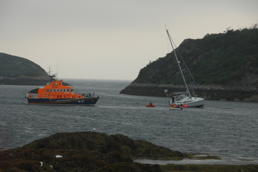 Yacht Maggie May was successfully floated off around 11pm last night. An eventful evening was concluded at dark with the Portree Lifeboat securing the yacht to our pontoon, lifting the anchors used to stabilise the grounded yacht. It started around 3.50pm when the yacht took the direct route into the North West pool. We attended with MV Rona but were unsuccessful. However it ended well.