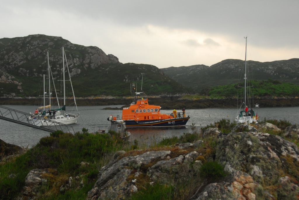 Hamish and Donnie assessed the situation and decided to stand to until just before the high tide, so a quick visit to Rona Lodge and a cup of tea later it was back to the lifeboat.