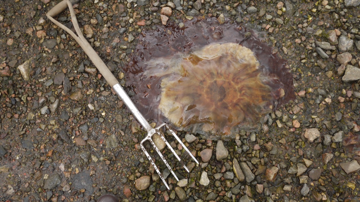The wind had thrown up a pile of seaweed in the harbour and lorraine was keen to collect so the boys and Lorraine gathered a full tractor load, despite the lions mane jellyfish through it.