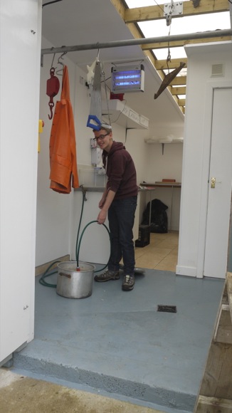 Last Saturday we had Strolla 2 (John and Jane MacInnes, Tayvallich) visiting. Always good to see them and get all the news. John volunteered to do a job or two so I set him to removing the old glass from the Lodge windows. (‘Quite successful)!!
