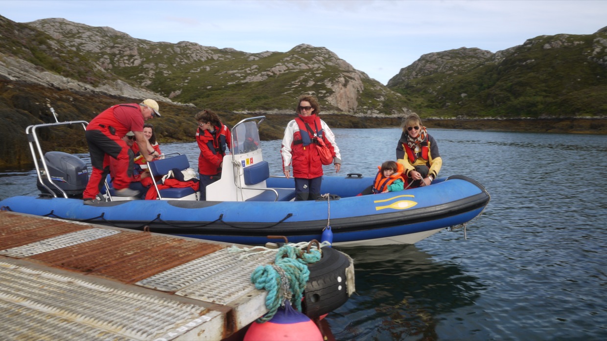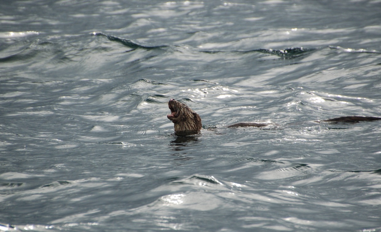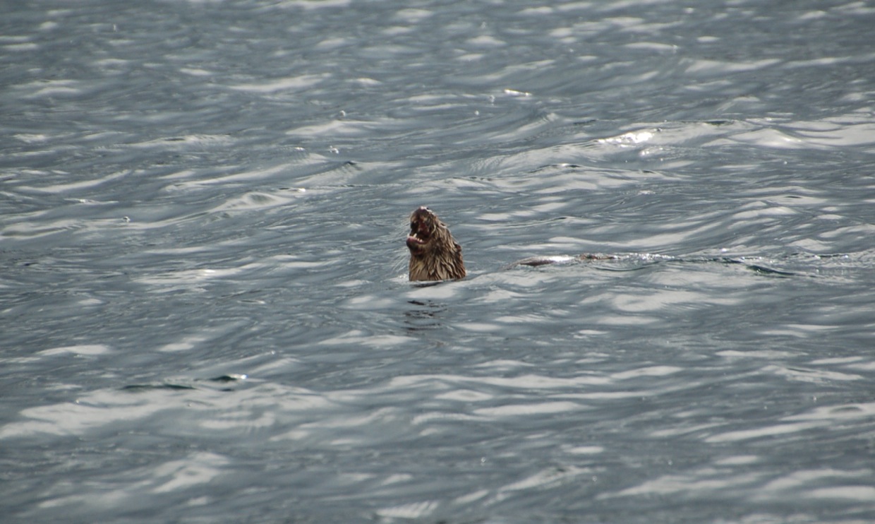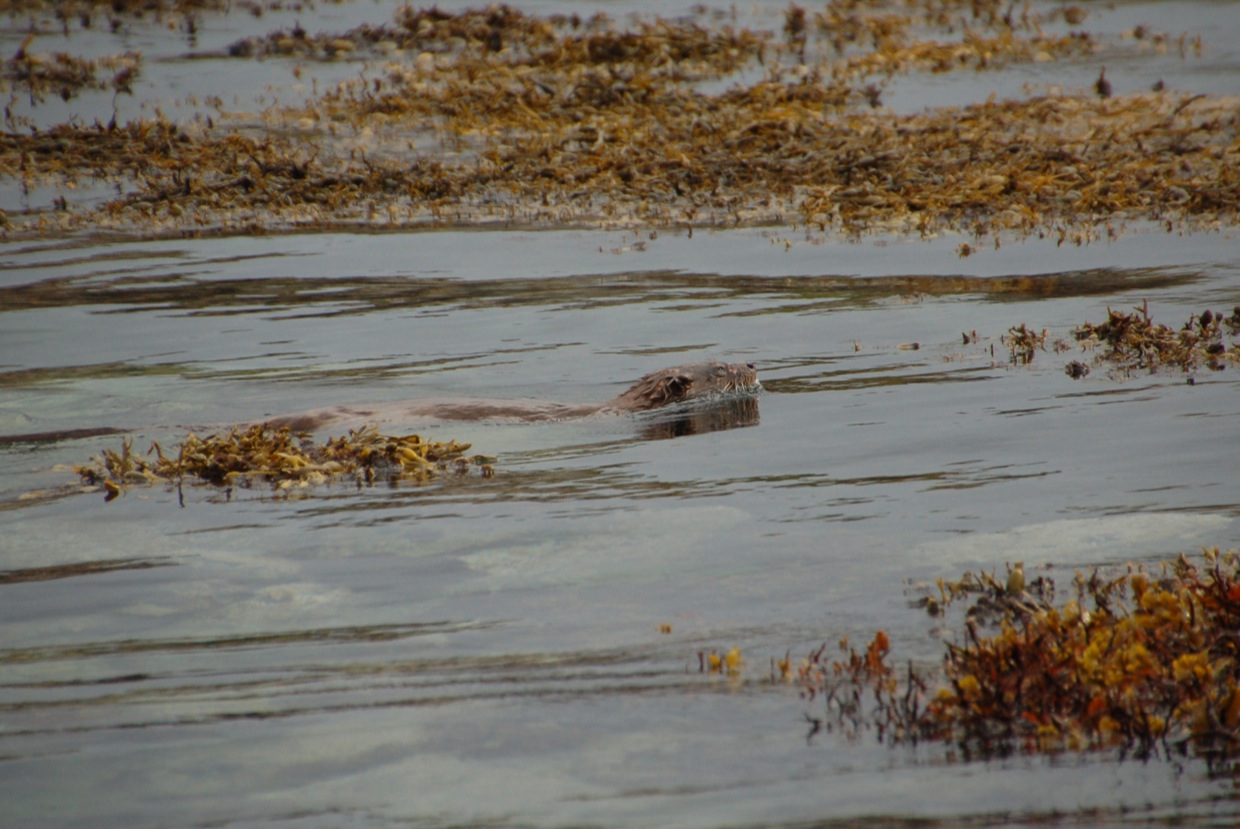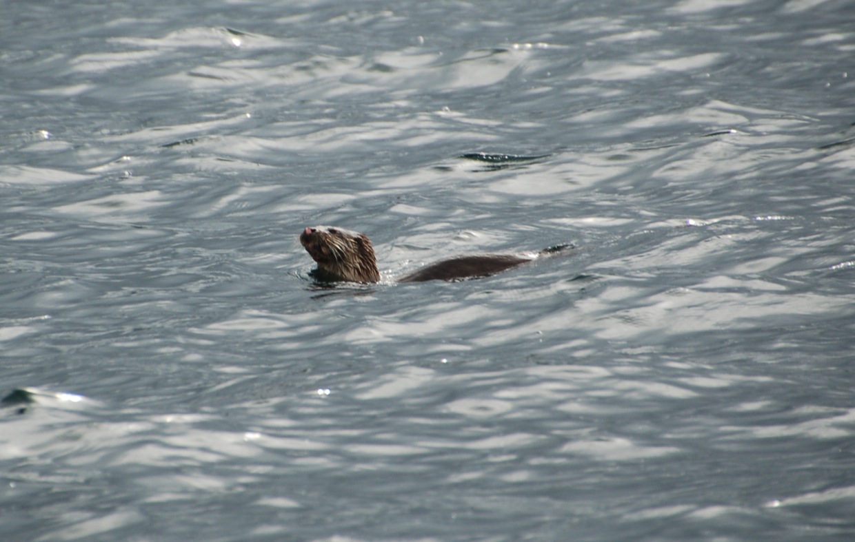 Muriel and David reported to us that they had Rona Raiders aboard the first night they were in the harbour this week. The box of pollock they caught was under the dinghy at the bow of the boat and at 3 in the morning the otter paid them a visit. When David got up to chase it away it hid with the fish below the dinghy which was upside down. It then hid on the upturned seat and when the dinghy was turned over it disappeared in a flash over the side.