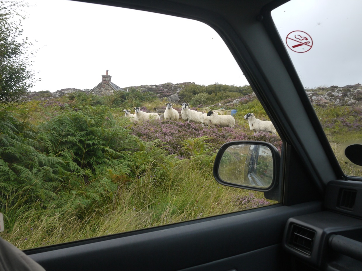 Tuesday I was under orders to get over to Escape to take new photos for the Alasdair Sawday’s website, weather again crap so off we went in the jeep. To find that the sheep were blocking the road, they had been back over to Big Harbour on Monday morning but of course the grass is greener on the other side.
