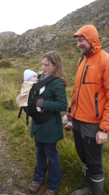 After everyone had left it was down to the hard work, with a 300lb stag in the cooler to butcher three days of standing filleting were the prospects. Out of the blue (or should I say grey0 a yacht appeared, a quick spy and here was Yacht Aisling, Ronan Martin and Francis. We had not seen them for maybe a year and it was a lovely surprise to see that baby Seamus had joined the crew, they were grabbing a few last days with their three month old son on the yacht before it was laid up for the winter. The forecast had frightened them so the headed for our mooring and at this moment are bouncing around out there in the half gale.