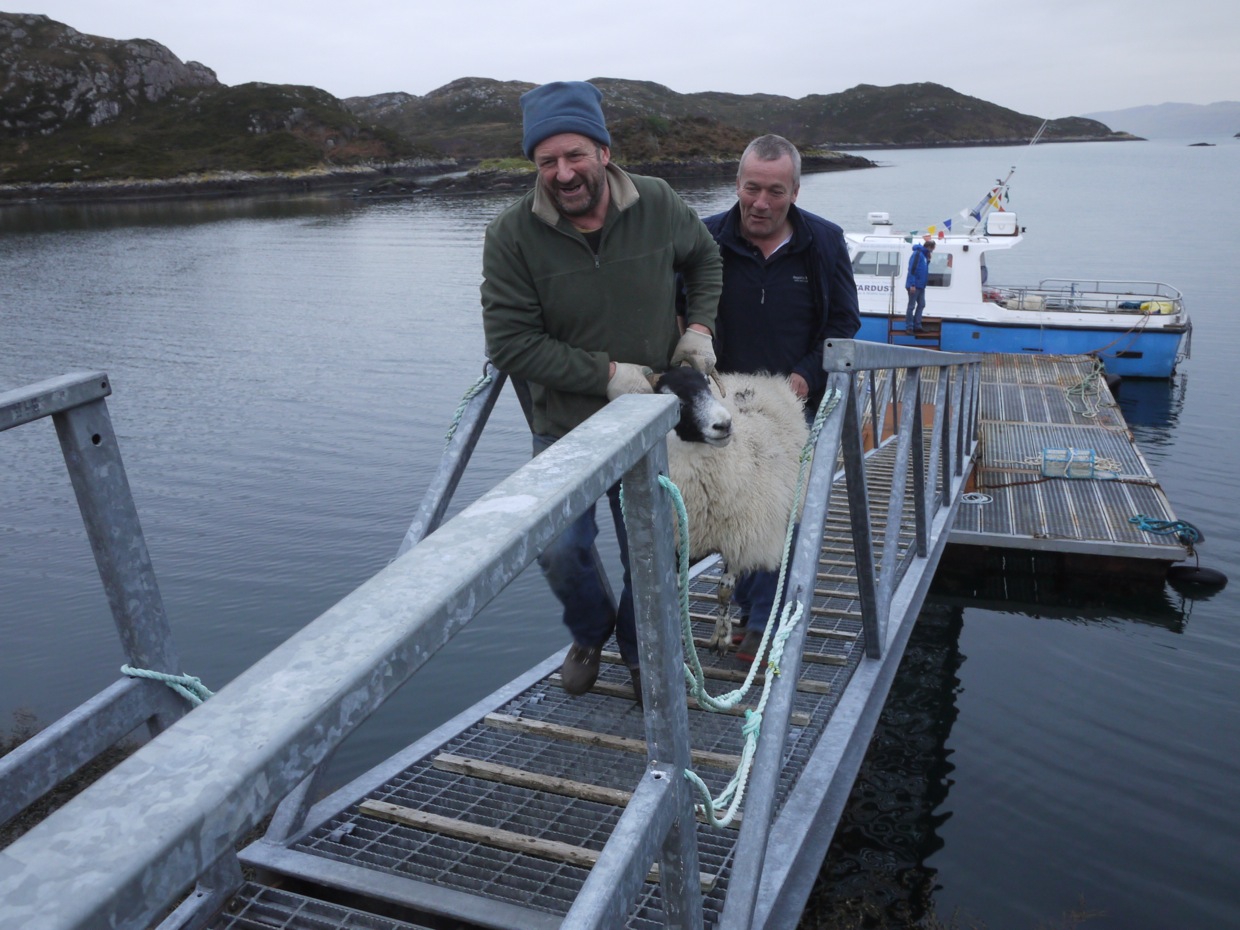 I asked Hugh (plant hire/Raasay) to look out for some good ewes to add to the Rona pack. At the Dingwall mart a few weeks ago he did just that and bought us 6. They holidayed at his brother’s place outside Inverness and when we got a weather window MV Stardust (our old ferry) took them over. At least this ferry made it, Hugh informs me that the new Raasay ferry has been plagued by breakdowns and yesterday it had an engine fail and ‘skelped ‘ the pier!!!!