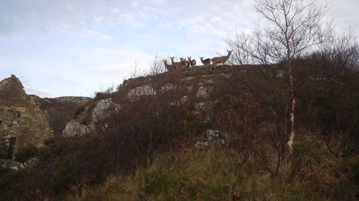 I had some things to pick up there, so it wasn’t a wasted journey. Some of the boys up at the Qinetic Base are moving on so I thought it would be a good chance to see them before they left. The sun came out but the deer got wind I was about and they weren’t.