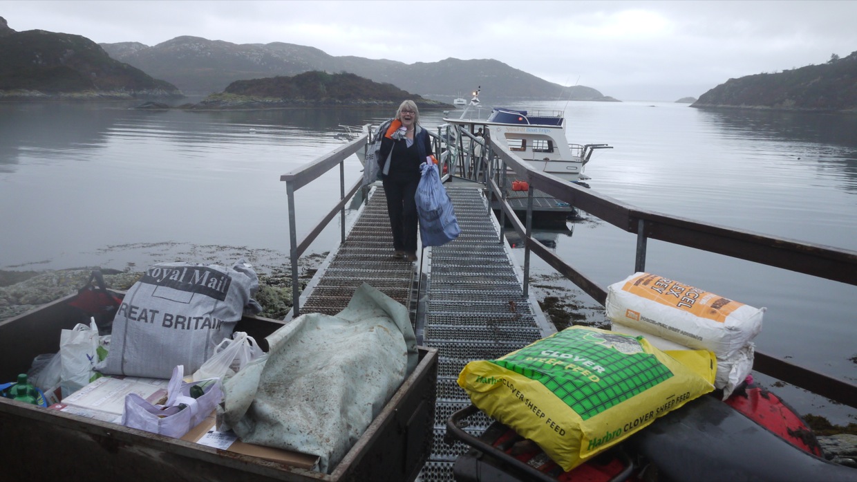 Thursday looked calm so a frantic evening was spent writing Xmas cards and getting presents organised as MV Spindrift was due in the morning, as it was the morning was very dreich with only a small gap in the weather. So emails, shopping, lists and calls were flying back and forth for Calum and Irene to do the food shop and Pam and Kevin to get the hard goods. Trying to remember everything is a nightmare and we always forget something, or something doesn’t arrive to the suppliers. Lunch time our first boat for a while arrived. Thanks to our shore based pals.