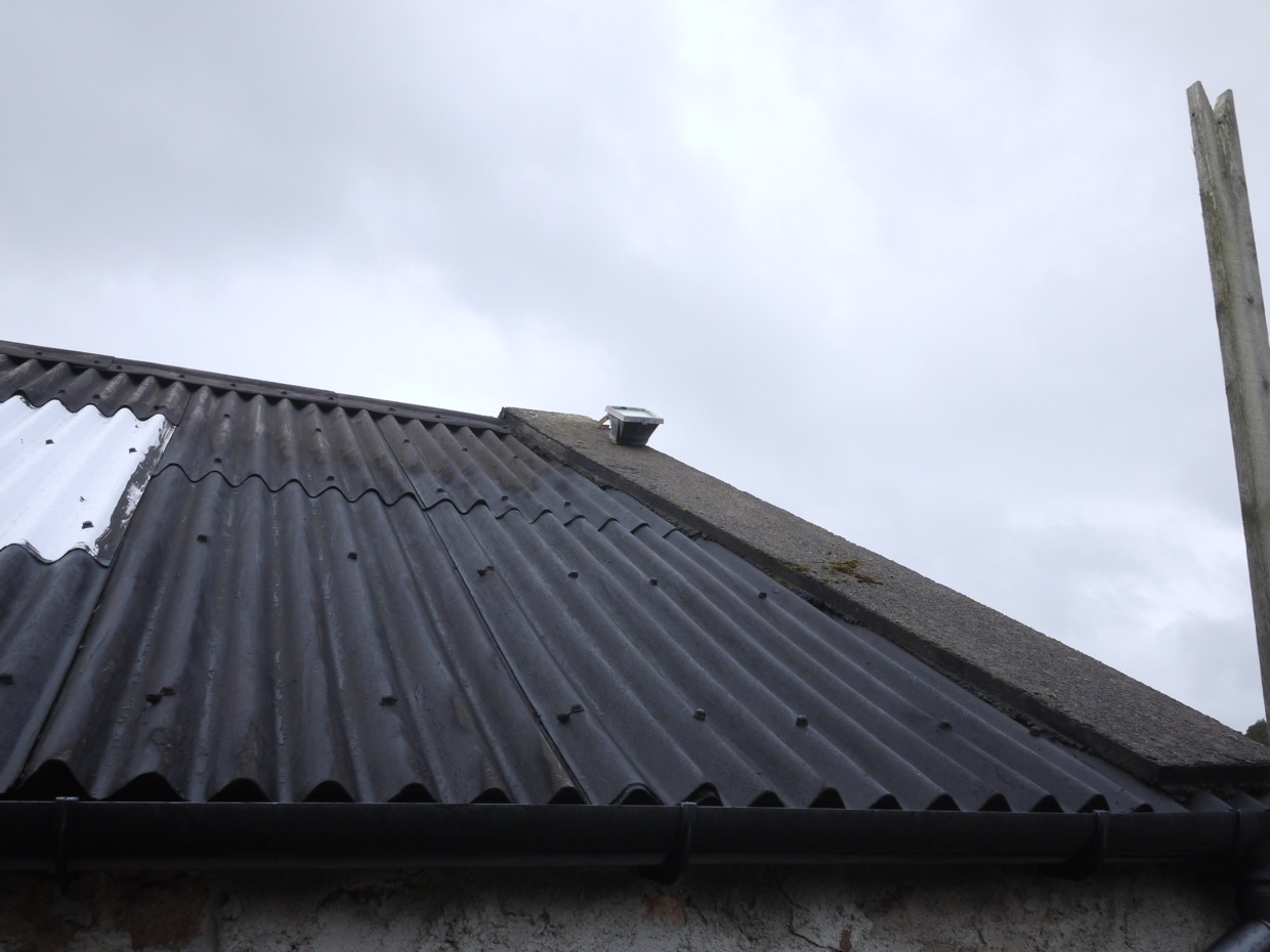 I spotted the spotlight on the bunkhouse had been blown up onto the roof, round the corner and it was obvious that the gangway had issues.