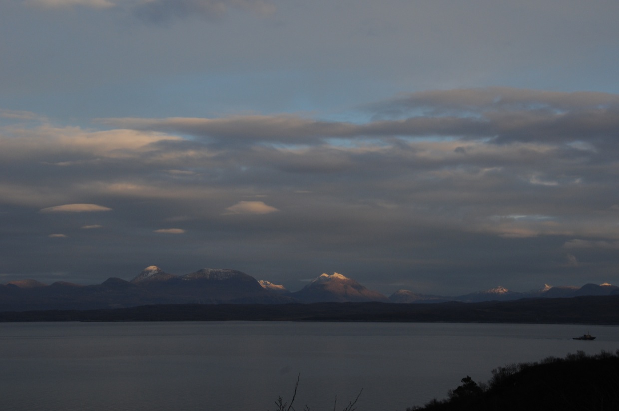It was a pleasing view to see the Torridon hills with some snow on. But back to the last couple of weeks. On Saturday morning in a gap in the weather we got Mike and Lorraine out to look after Rona for two weeks, under orders and a quick look around and we were off.