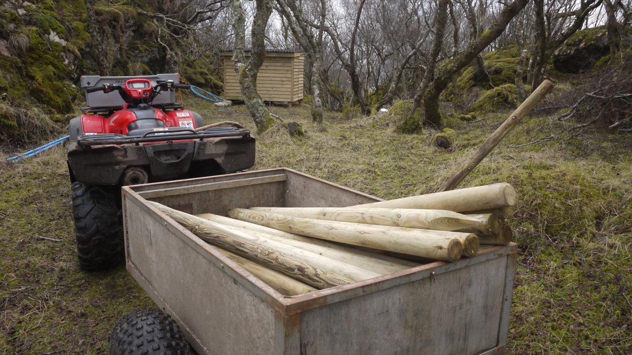 But back to Rona and it was back to work. First thing Saturday Morning was to take the 25 posts up to the new fence, work in progress to the East of the house. Which is designed to keep the sheep in, we will see.