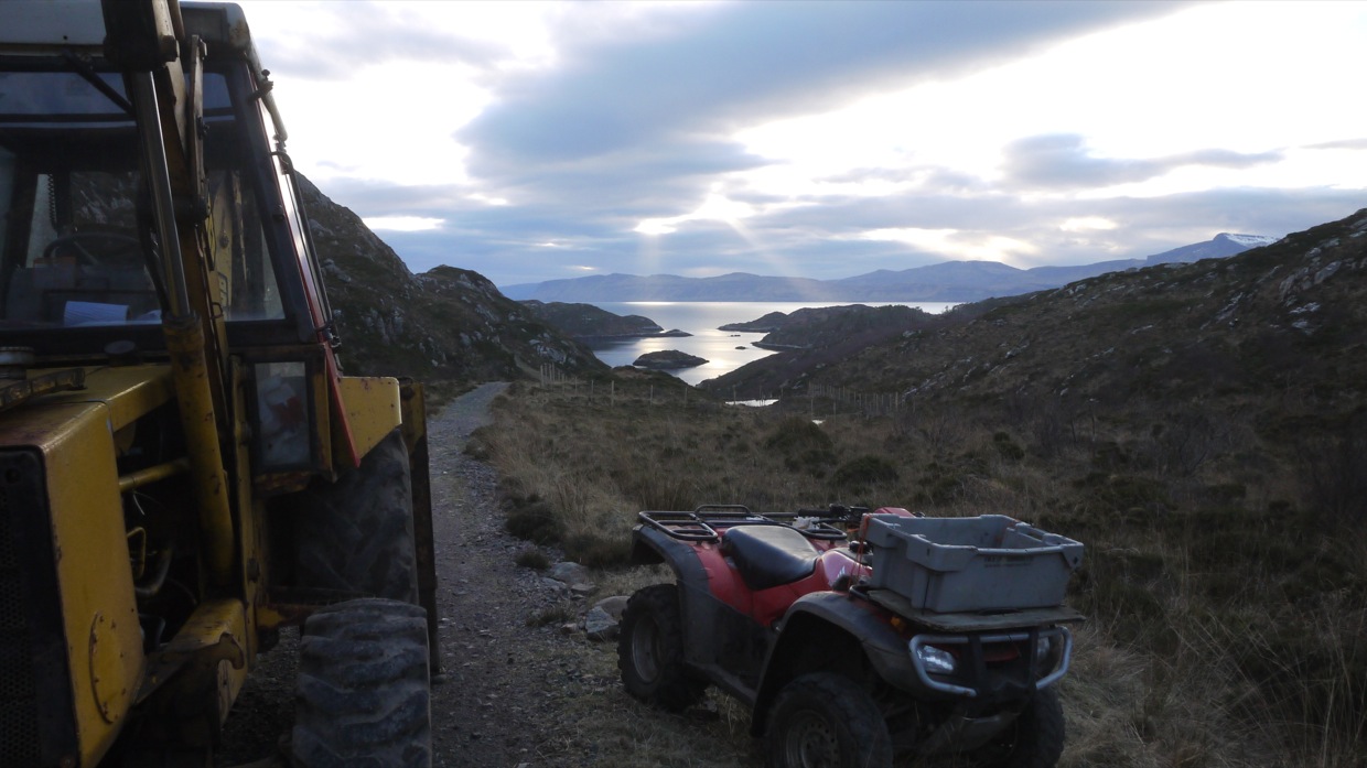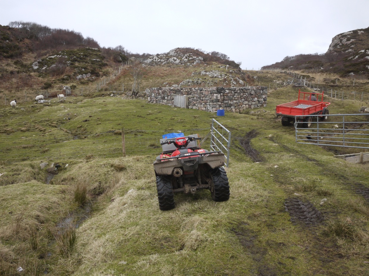 To-day it was a little bit grey first thing but soon became calm and sunny. It makes a change for sure to hear and see on the TV the low pressure systems hammering the South and not us. As it was it gave us another day to finish the sheep in good weather, so we set a trap and caught the 4 escapees.