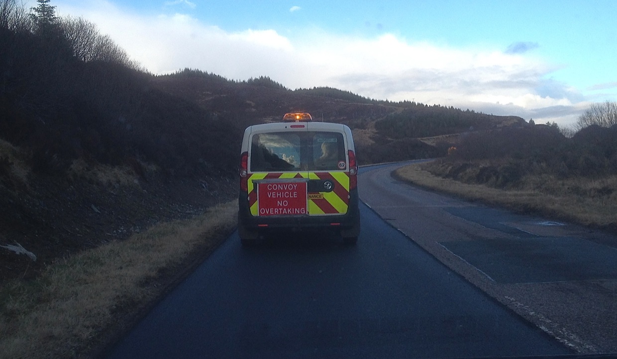 Looks like the Council is spending the budget, hopefully some of the potholes will get sorted, there are many, more obvious to us not knowing where they are and finding them without any problem. The convoy vehicle must have been washed that day, the reflection on its back window was very clear. The weather from Kyle just got better and the further East we went the dryer it became. It was a big surprise to see fields from Inverness to Elgin very dry and spring work in full swing. It was a different world.