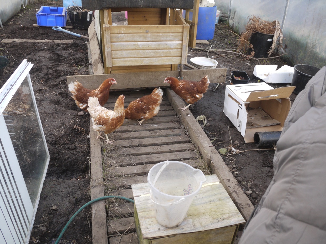 All too soon it was back to Rona but not before picking up 4 new hens to replace the minks dinner. I think they were a bit shell shocked and the hail showers Friday did not settle them much in the poly tunnel.