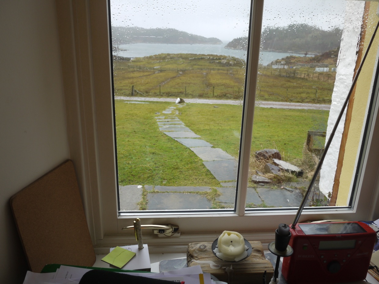 Don’t know if you can see but the white ‘thing’ is a seagull which has been trying to take off all day but the force8/9 gale has grounded it. It was sheltering for most of the morning behind the stump at the bottom of our path, poor bird. That is the way it is to-day, gales, pouring rain but at least it is relatively warm.
