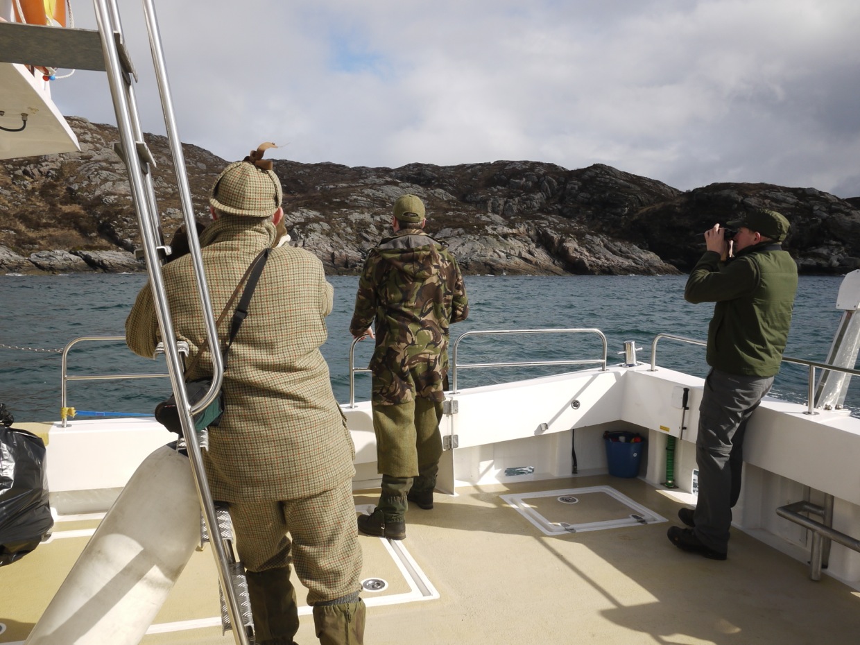 Tuesday, a bit dry but wide awake, we were expecting the MV Seaflower from Shieldaig. K n P were away with their daughter in Glasgow who was having a baby, so great excitement there. We had asked our deer experts to come over when they could, but they could only manage on the Sunday, the weather was not so good on the day, so they all re-arranged and managed to shift to Tuesday. First thing in the morning in a decreasing easterly gale they left but as it turned out it was a super sail and very sunny. It certainly was breezy and of course no one had checked the forecast as it looked so good the days before, but the gale passed pretty quick and it calmed away all day.