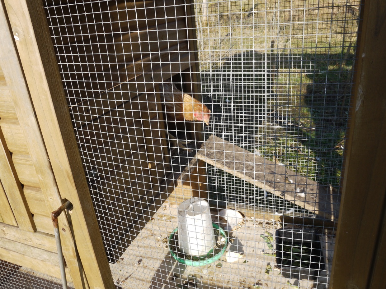 The new hens had outstayed their welcome in the poly tunnel and with the weather so good it was a quick shift down to the old hen run, now secure.