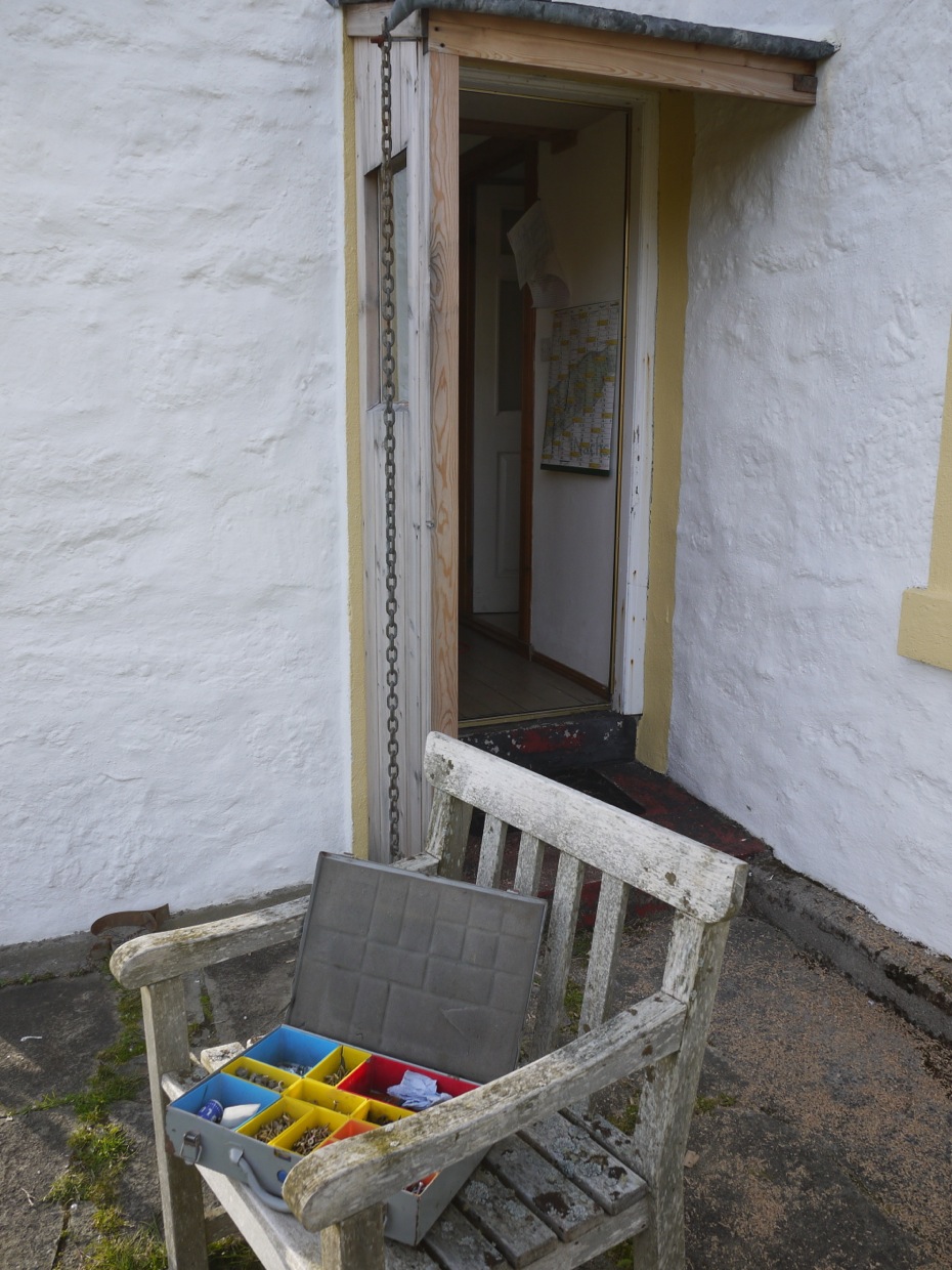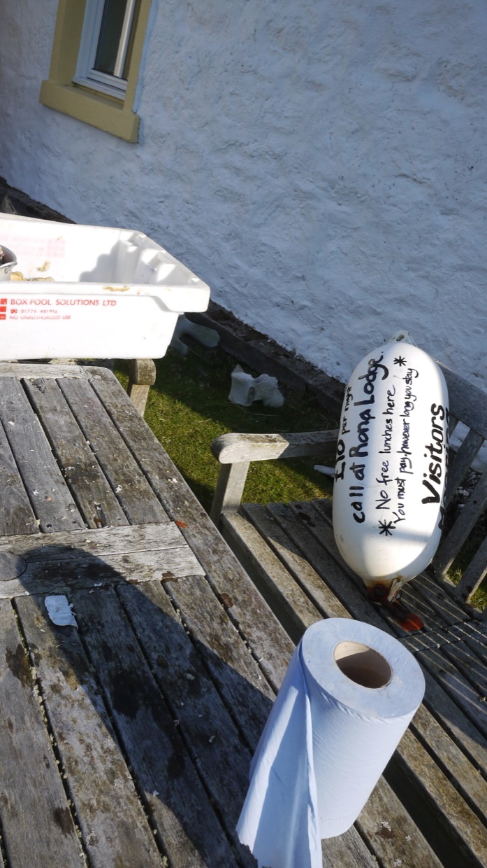 I couldn’t get out the front door, it had swollen yet again with the rain but Calum was here at the same time as our neighbours from up North on Saturday and after I broke the key in the door Calum managed to get a pliers on the key and force the door open, but then it would not close so late Saturday I finally got the door planed and back on. All the time I was doing it I was invaded by yachties from the three yachts with loads of questions.
