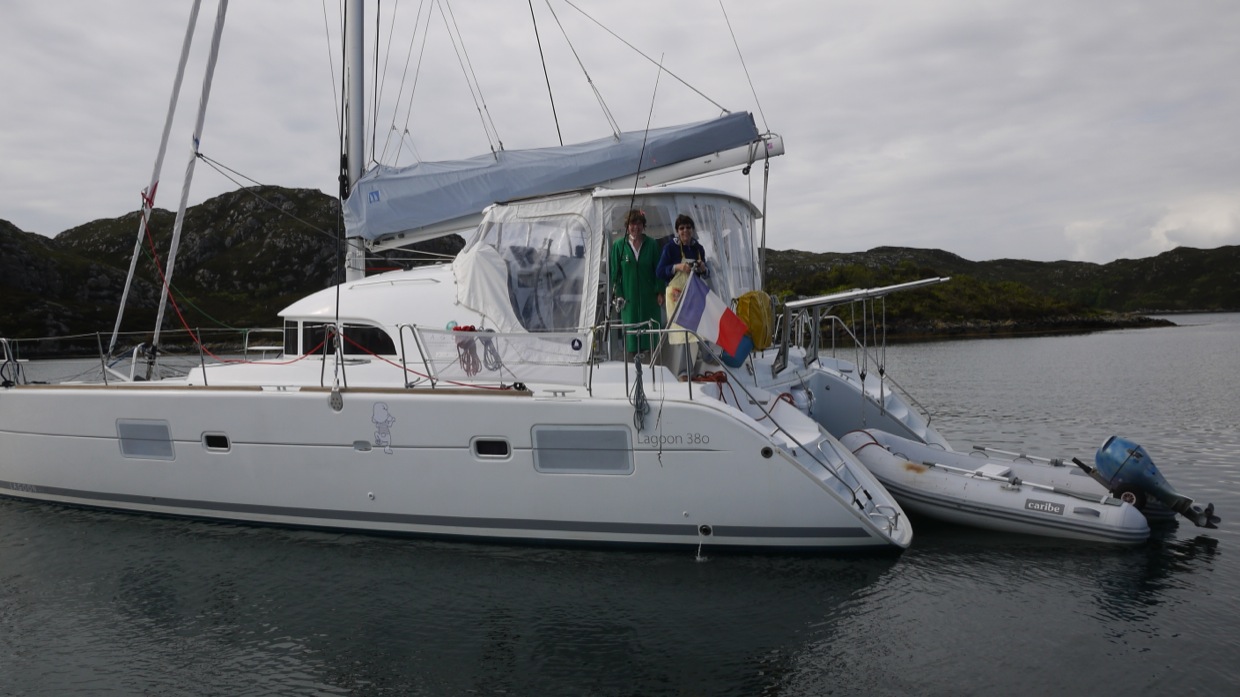 It has been Catamaran week last week,we usually see maybe 6 or 7 in a season, so far three in a week. The one on the left is from Brittany and when John Pierre the skipper came ashore we were talking about fishing and he offered to come out to help the next morning, he wanted to see how we lifted the creels. So, 7 am next morning we were off and had a lovely couple of hours picking up the creels and getting some seafood for the table.