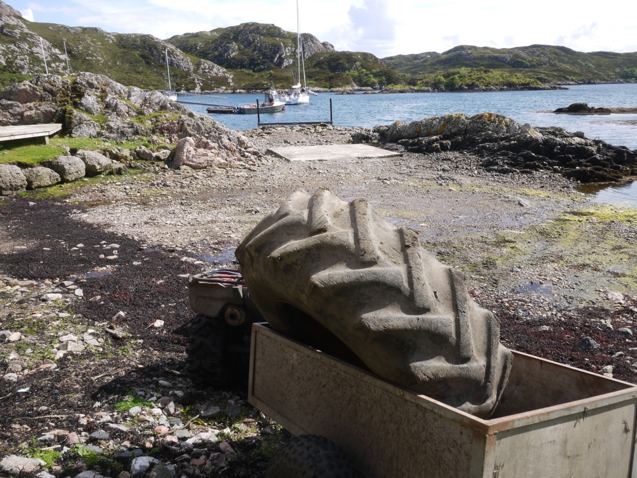 Saturday morning was very calm and clear, there were a few yachts in and another Grand Banks ‘Fyne Affair’ had arrived just after ‘Barron Kelvin’ had departed. I promised Andrew a fishing trip in the morning so once we had unloaded the weeks supplies and the new JCB tyre it was out on the boat for a couple of hours. We had a good fishing and saw the Sea Eagles but not a lot more. The motion was still there, one of Andrews pals, Natalie was looking a bit pale so we headed back in. Andrew headed off to Portree to get stores (more beer) and petrol because he had used more than intended when he was towing. They arrived back late afternoon and with the Saturday papers, excellent. We supplied the tea of prawns but declined to cook it but as the day got greyer we gave them a guided tour of the cottages then a movie up at the cabin. With the rain pouring down they settled down to a beer and possibly a sleep watching ‘In Bruges’