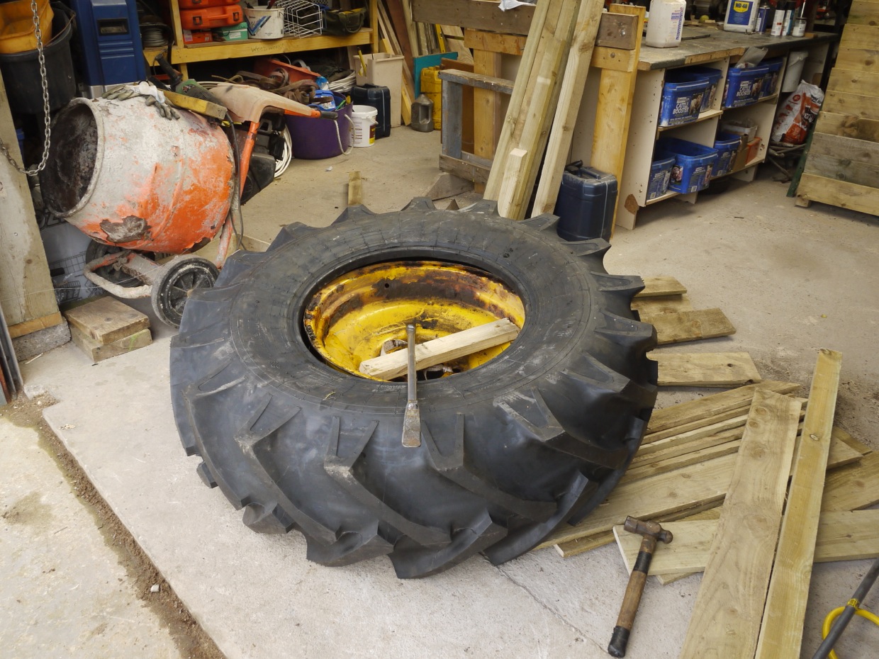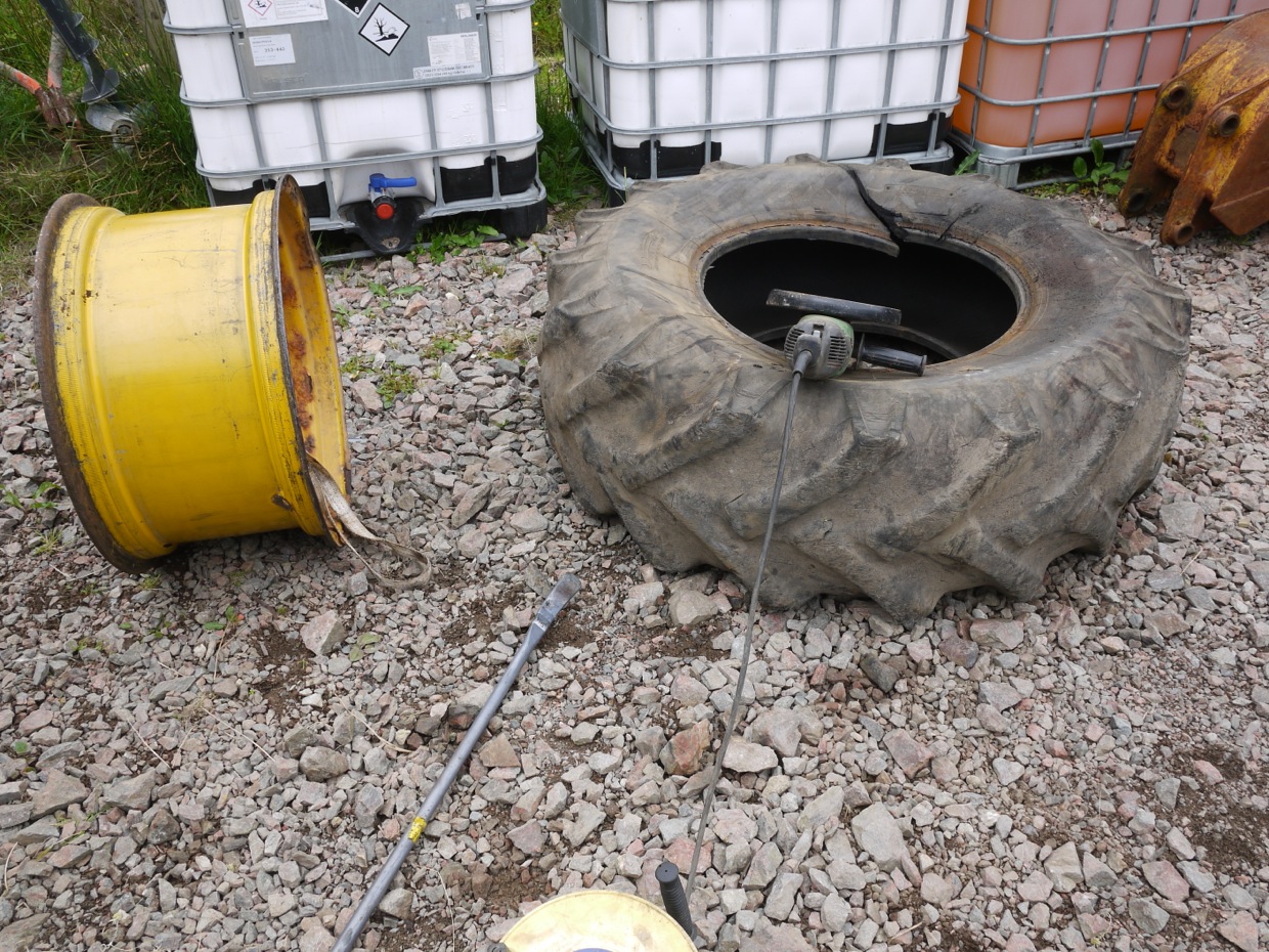 After that rant it was back to base and the tyre. Putting a new tyre on anything is going to be tight but a JCB rear. Now there’s a test but it is all part of the learning curve. After a few interruptions with our yacht visitors which was not a problem I finally got the tyre on the rim. Now the tube. I pulled out the brand new tube and fitted it and thought I was doing so well but made the fatal mistake of starting at the valve and promptly cut the valve clean off the tube, now that really made me fed up. But there is nothing you can do so I just messed about with the old tube, fitted a patch to it and tried that but that was a fail and by this time I had had the tyre off and on the rim several times. So now I’m an expert. The advice I would give to anyone is take it to Dingwall Tyres whatever the time/cost!!!