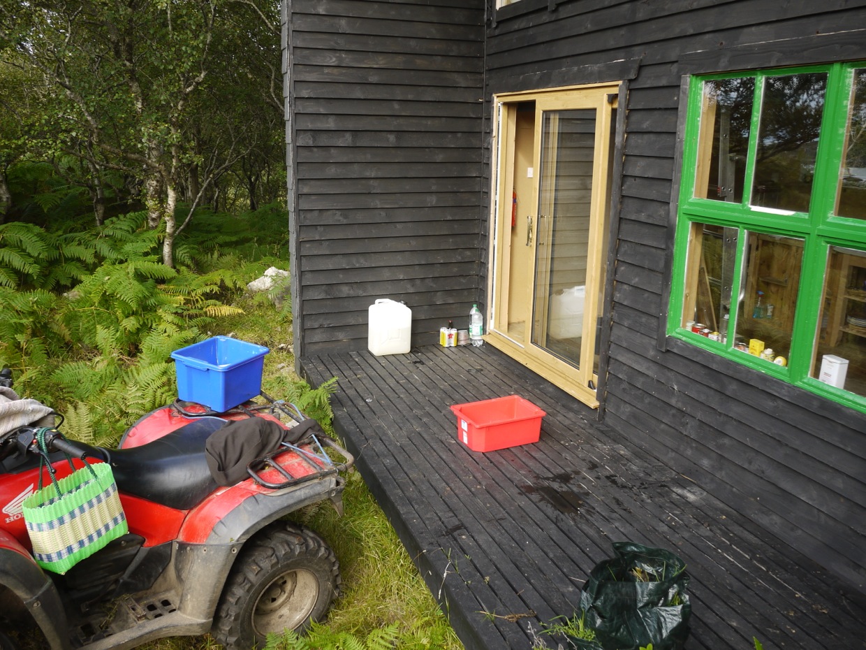 Monday night Steve and his brother in law, visitors to the cottages came over. They were keen to stalk a stag, or at least see what it was about. It was late after Ian’s visit but we headed south with little hope as the Black Back gulls were good early warning systems for the deer with the racket they make. As it happened we stumbled on a young stag and very quickly carried out the stalk. It was good for a change to get a bit of luck. However, on our return to base I discovered that the cooler for the deer larder was tripping the MCB. After a bit of panic and the implications of a dead stag, humid air and a forecast of 20+ degrees next day. I dug out the old Honda genny and plugged it in. Not as sensitive as MCBs it worked fine and I finished around 12 o’clock, pretty much knackered.