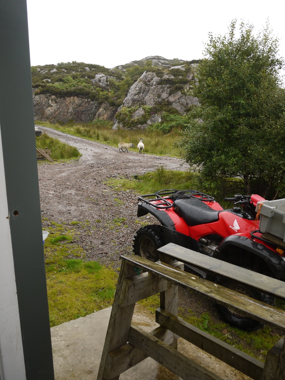 By the end of the week the weather had started to break and by Friday it had rained a lot but fortunately in short bursts. In the middle of the day I was butchering the stag and the sheep came to join me they were pretty wet by this time and I think if I had not been in the larder they would have come in.