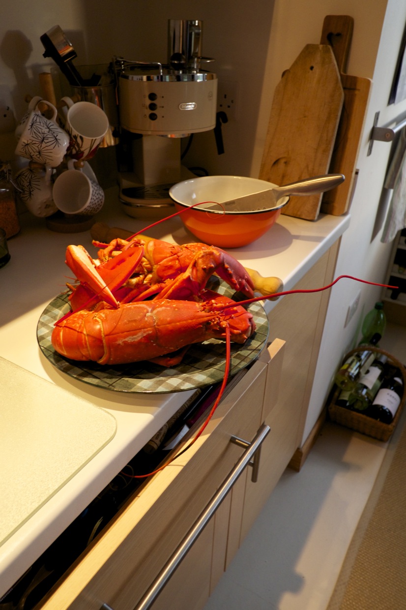 Thursday last week we took off to Inverness, clinics, dentists, doctors and shopping all in a day and a half. We left Calum in charge and headed down to Strathpeffer with a couple of Lobsters for tea. The Lobsters are plentiful this year and last week Craig who was in the ‘Escape’ house with his family, caught one.
