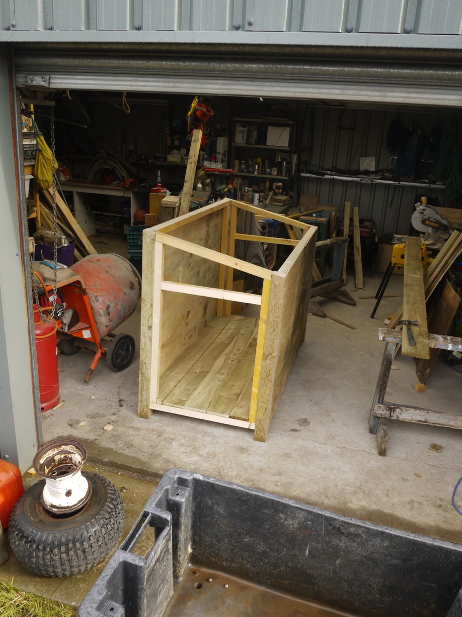 Peter Umber, an old German hunter I met many years ago was coming to Rona, with his dog. So even more pressure to get a kennel built to keep the dog out of the way. As it turned out Peter’s dog was very well behaved off the lead and looked at both the sheep and hens with disdain whilst the hens inspected him.
