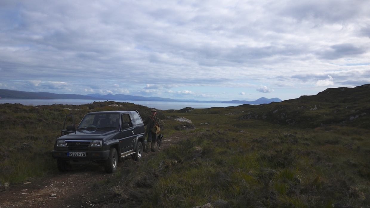We got everyone sorted out and by late afternoon it was wine o’clock and we retired to MV Kestrel for a drink that went on a wee bit until late!! Sunday morning Calum and Irene went off on tour and I headed South with Peter to check out the stags. That’s when Peter discovered the Rona terrain and after a couple of hours walking I had to go for the jeep to collect him.