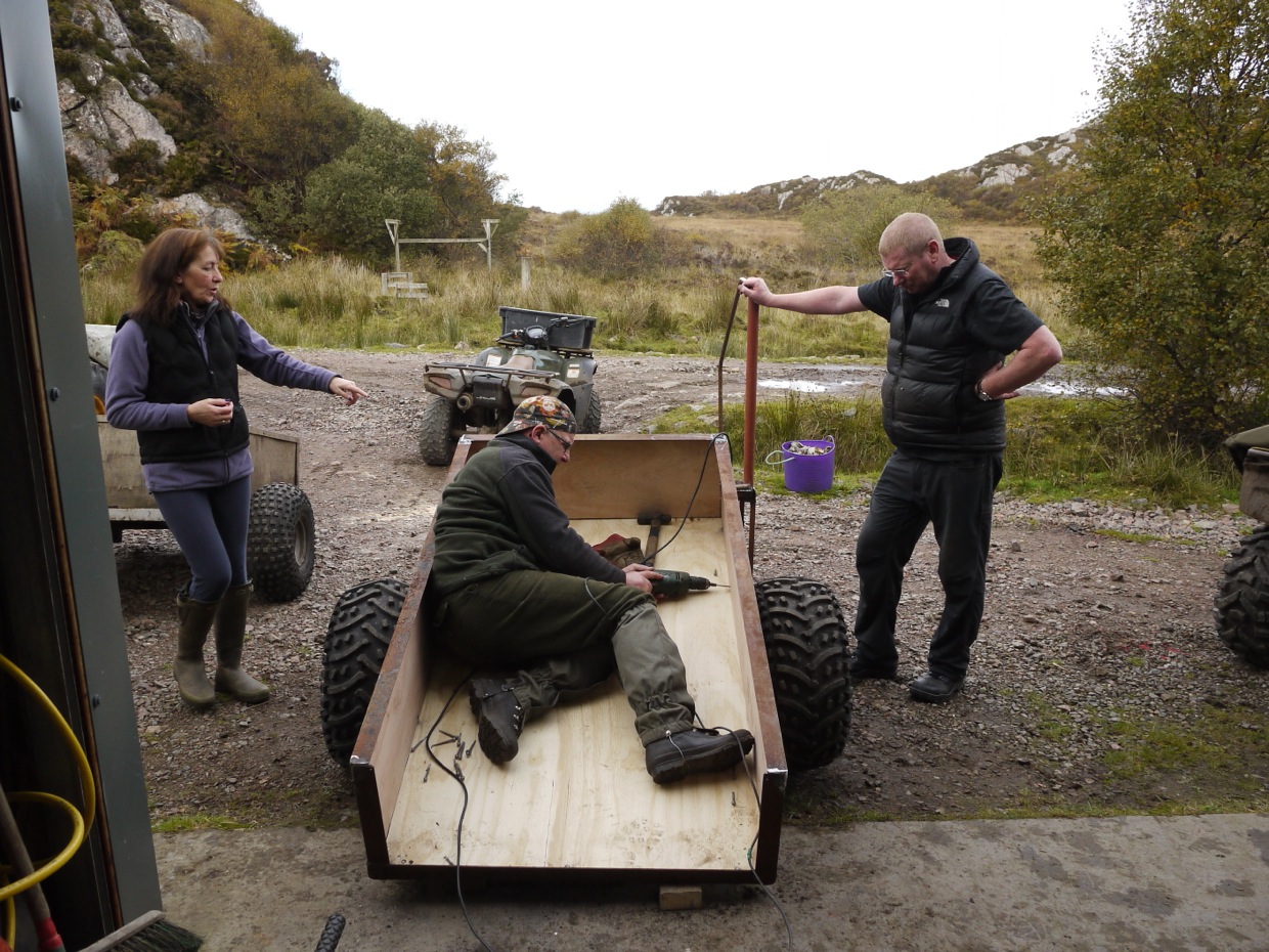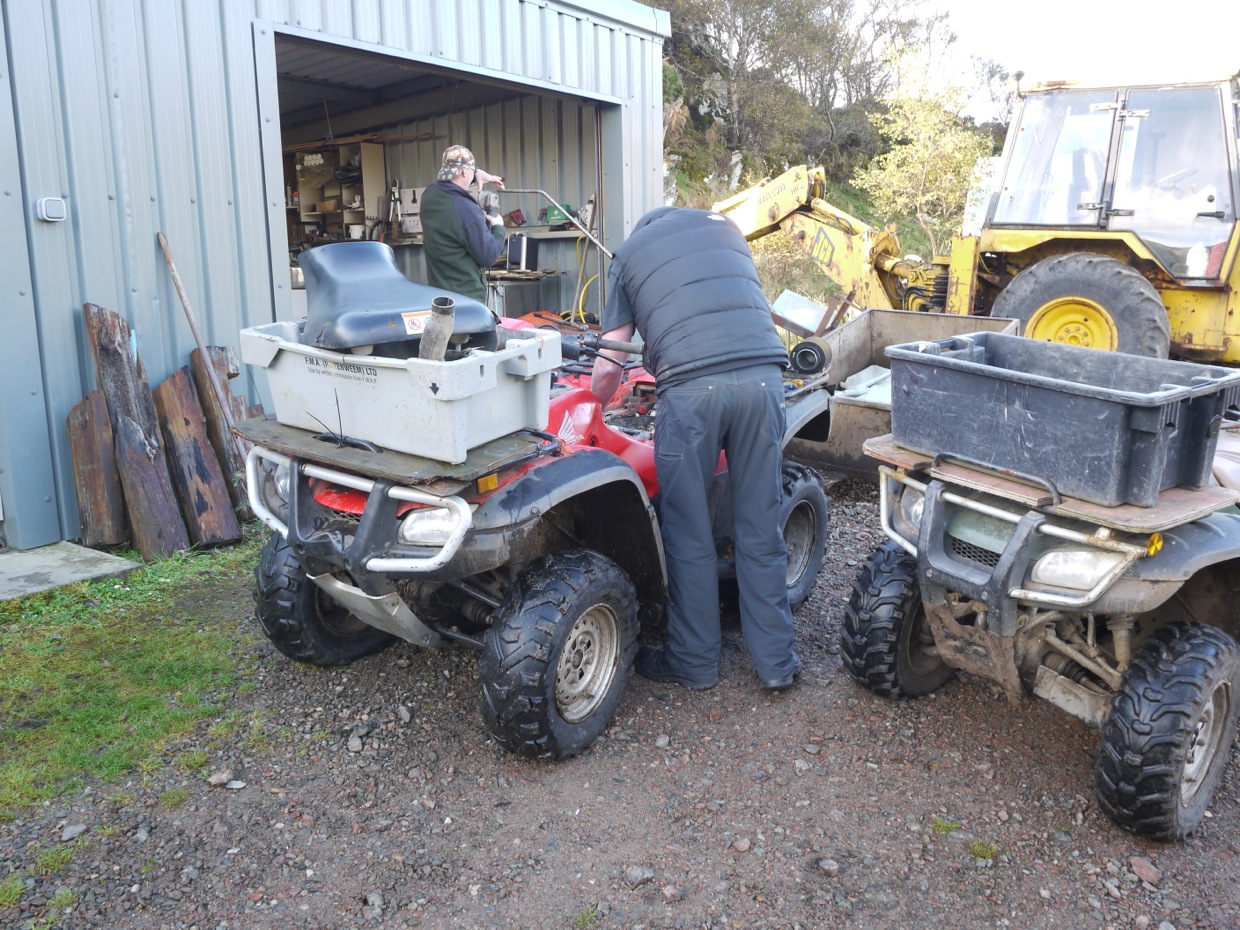 Last weekend we had Dode, Dougie, Lorna and Bruce up for a visit. There would be a bit of diving, work and play. Bruce was going to have a walk to look round the regeneration and deer impact, Dode and Dougie were going for a dive but I was taking advantage of their welding and motorbike repair skills first.